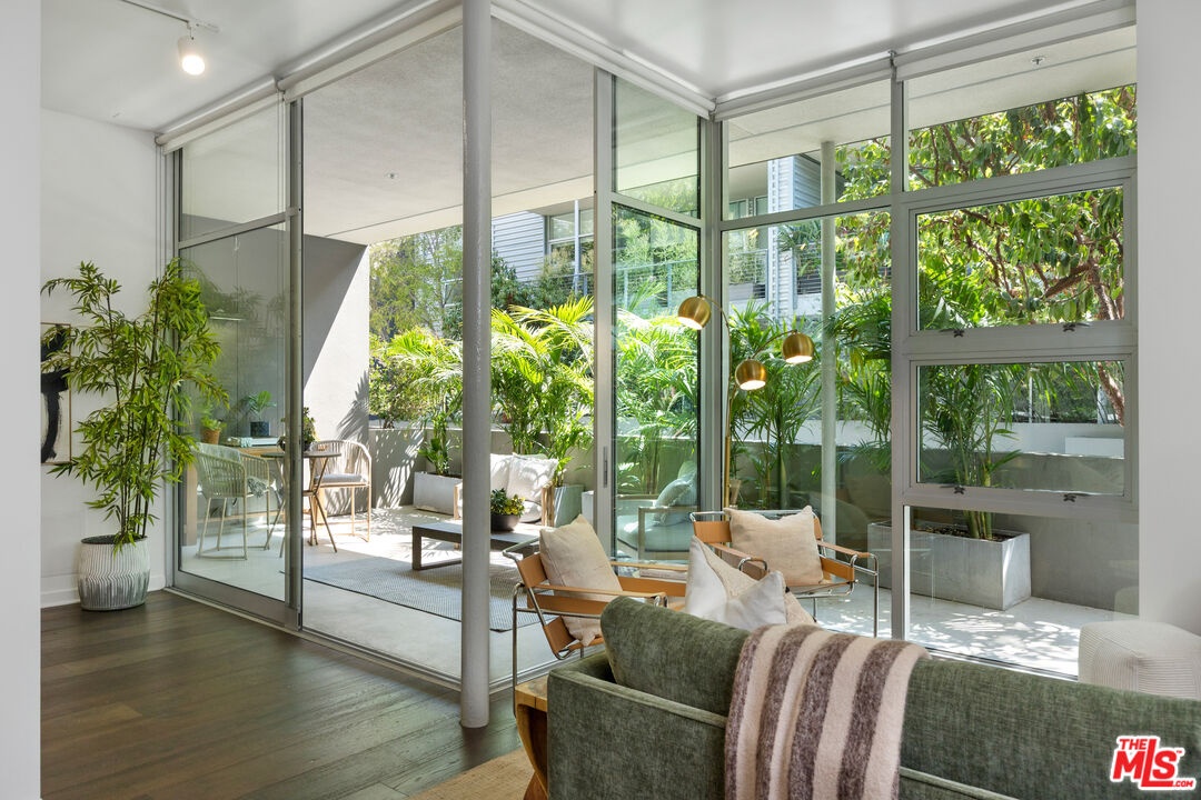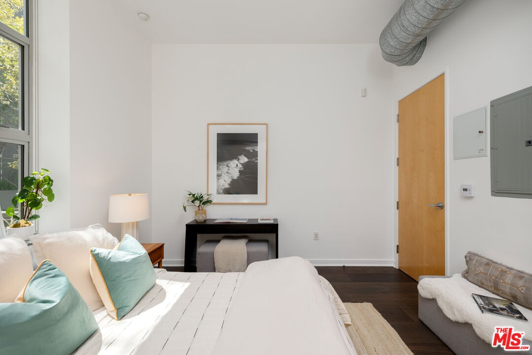 Modern Loft Living in the Heart of the Marina Arts District! Welcome to Gallery Lofts where clean, modern design meets the creative energy of one of Marina del Rey's most vibrant neighborhoods. This stunning 2-bedroom, 2-bathroom ground-floor unit offers nearly 11-foot ceilings, expansive floor-to-ceiling windows, and oversized Fleetwood sliding doors that flood the space with natural light and create seamless indoor-outdoor flow to a private ~280 SF balcony lined with lush palms. Designed with a contemporary open-concept layout, the sleek kitchen features stainless steel appliances, while the oversized primary suite boasts a custom walk-in closet and a luxurious bath with soaking tub and separate glass shower. Additional highlights include: *Hardwood flooring *Central A/C & heat *Upgraded shower fixtures in primary bath *Closest systems *Brand NEW water heater *In-unit laundry *2-car parking & ample guest parking Gallery Lofts offers residents a peaceful, artfully landscaped community with a serene outdoor lounge, BBQs, and a double-sided fireplace perfect for entertaining or unwinding.All of this just minutes from Abbot Kinney, Playa Vista, the beach, bike paths, shops, restaurants, theaters, grocery stores, and everything Marina del Rey has to offer! **Developer approx. 1,340 SF; LA County Assessor shows 1,260 SF**