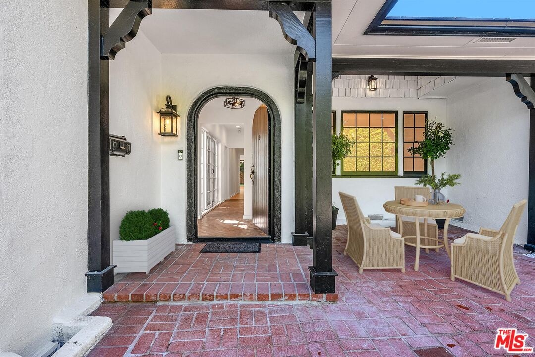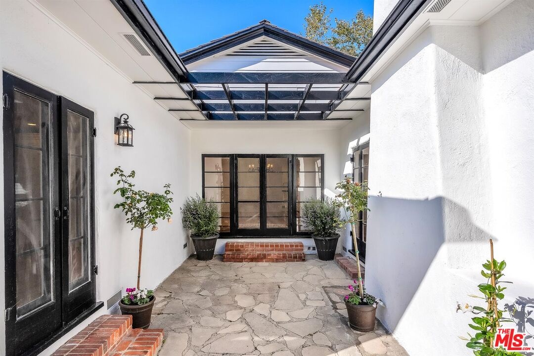 Experience Beverly Hills living at its finest in this updated single-story home, ideally positioned in the coveted Beverly Hills Flats. Set behind an electric gate and surrounded by lush greenery and tall hedges, the property offers exceptional privacy and comfort. Offering 4 bedrooms, each with en-suite baths, the home features spacious living and dining rooms ideal for both relaxation and entertaining. French doors from the primary suite and living room open to a serene courtyard, creating wonderful indoor-outdoor flow. Nearly every room in the home offers direct access to the outdoors, allowing the grounds to be harmoniously experienced from all areas of the property. The kitchen is well-appointed with built-in appliances, ample cabinetry, and a functional layout that flows seamlessly into the main living spaces. Additional highlights include beautiful original hardwood floors and central A/C.Expansive, park-like front and rear grassy yards create an ideal setting for outdoor living and play. The large front lawn features a multi-use playground set with a slide and swings, and the detached garage offers a convenient space for work, fitness, or creative use.A rare opportunity to enjoy privacy, space, and prime location in one of Beverly Hills' most prestigious neighborhoods.