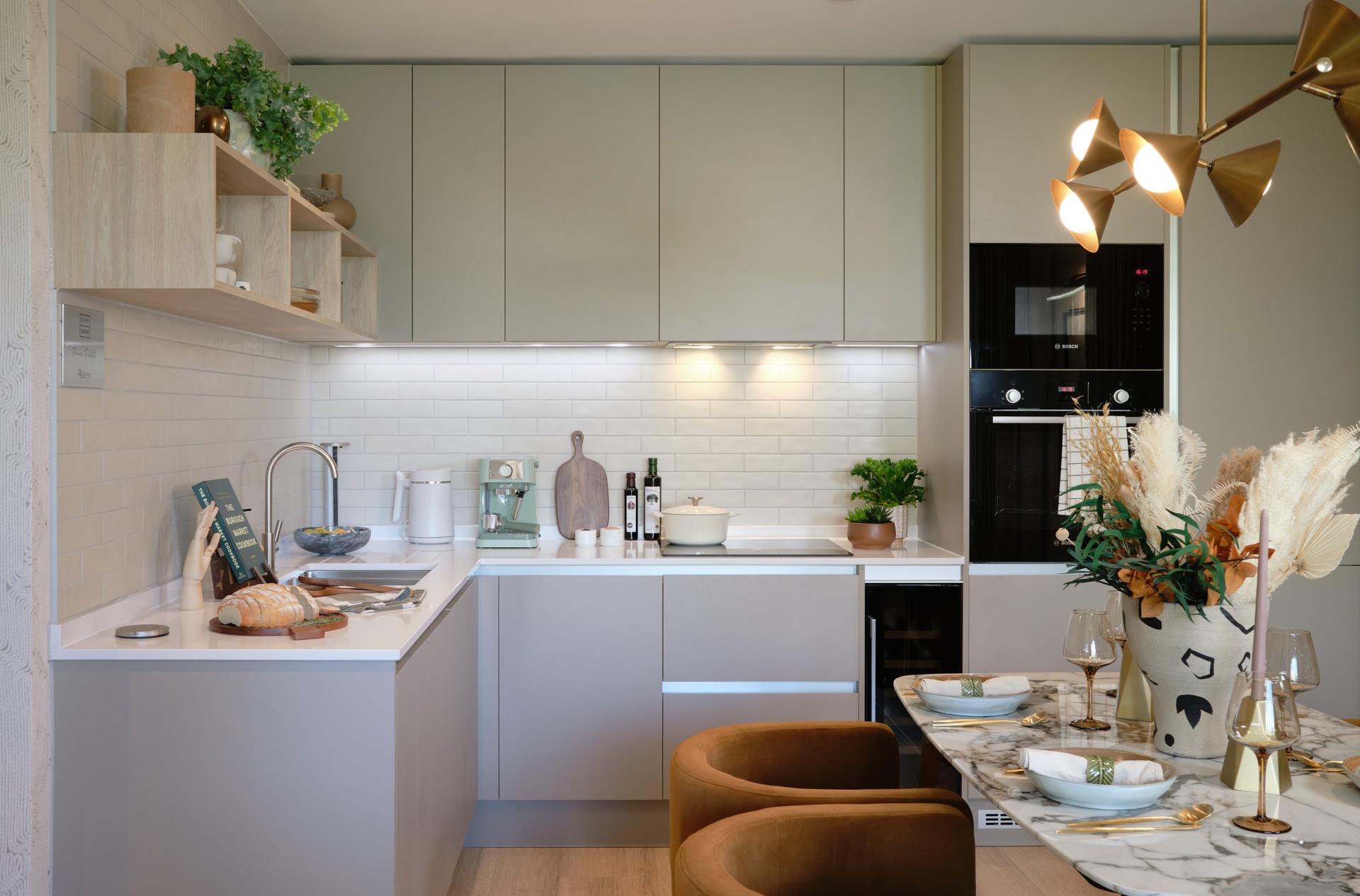 Kitchens come fully fitted with integrated appliances, composite stone worktops, and contemporary cabinetry, while bathrooms feature porcelain tiling, chrome fittings, and sleek finishes. Energy-efficient lighting, secure video entry systems, and smart heating controls add the final touches to a refined urban home. The building also benefits from secure undercroft parking, cycle storage, and electric vehicle charging points, ensuring convenience for residents who live and work across the capital