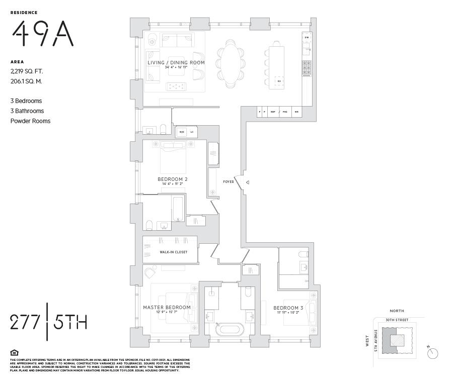 Behold the grand allure of this breathtaking 3-bedroom, 3.5-bathroom residence, majestically perched on the 49th floor of the illustrious 277 Fifth Avenue. Indulge in the panoramic vistas of Manhattan's iconic skyline and the shimmering expanse of the Hudson River, framed by soaring floor-to-ceiling windows offering sweeping exposures to the South, West, and North.