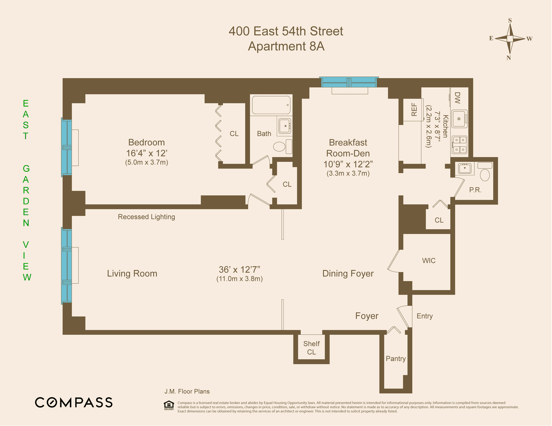 Step inside to be greeted by a spacious foyer leading to a large living area, with eastern exposures. through Admire the view and the gardens below through oversized windows overlooking the gardens. The open dining room provides a perfect setting for entertaining, while the wide plank flooring and recessed and chandelier lighting create a warm, inviting ambiance.