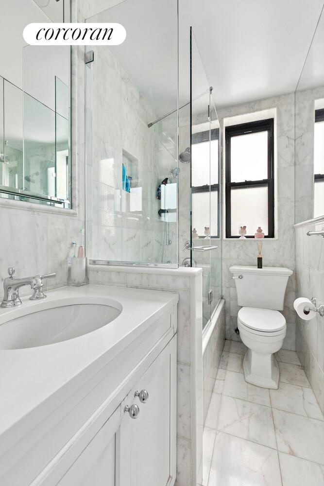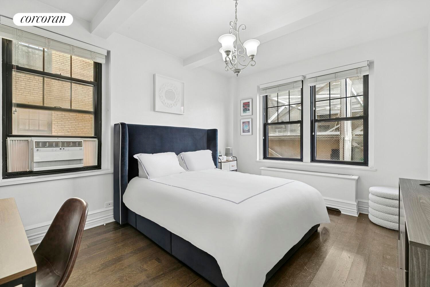 The windowed kitchen is outfitted with stainless steel appliances, a dishwasher, abundant cabinetry, and a generous pantry-offering storage and functionality rarely found in a one-bedroom. The newly renovated, windowed bathroom with a soaking tub adds modern comfort. The king-size bedroom enjoys double exposures and ample closet space, making it a bright yet tranquil retreat.
