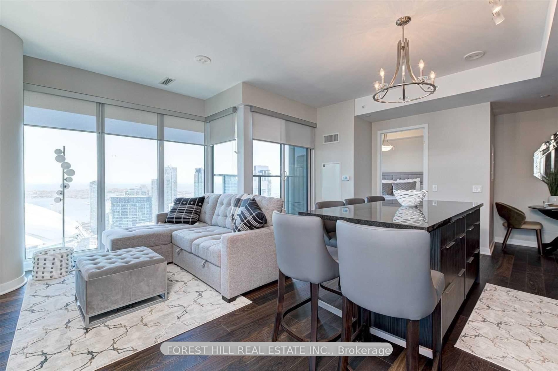 Welcome To King Blue. Immaculate Fully Furnished 2 Bedroom 2 Bath Unit In The Heart Of The City! Many Upgrades Throughout With Gourmet Kitchen And Large Counter For Entertaining. Sun Filled Corner Unit With Breathtaking City And Lake Views. Large Balcony Along With Juliette In Master Bedroom. Parking Included