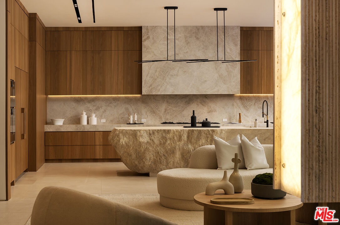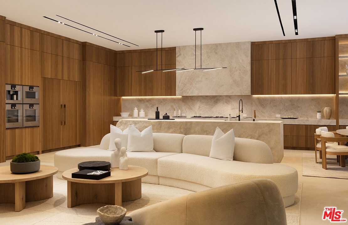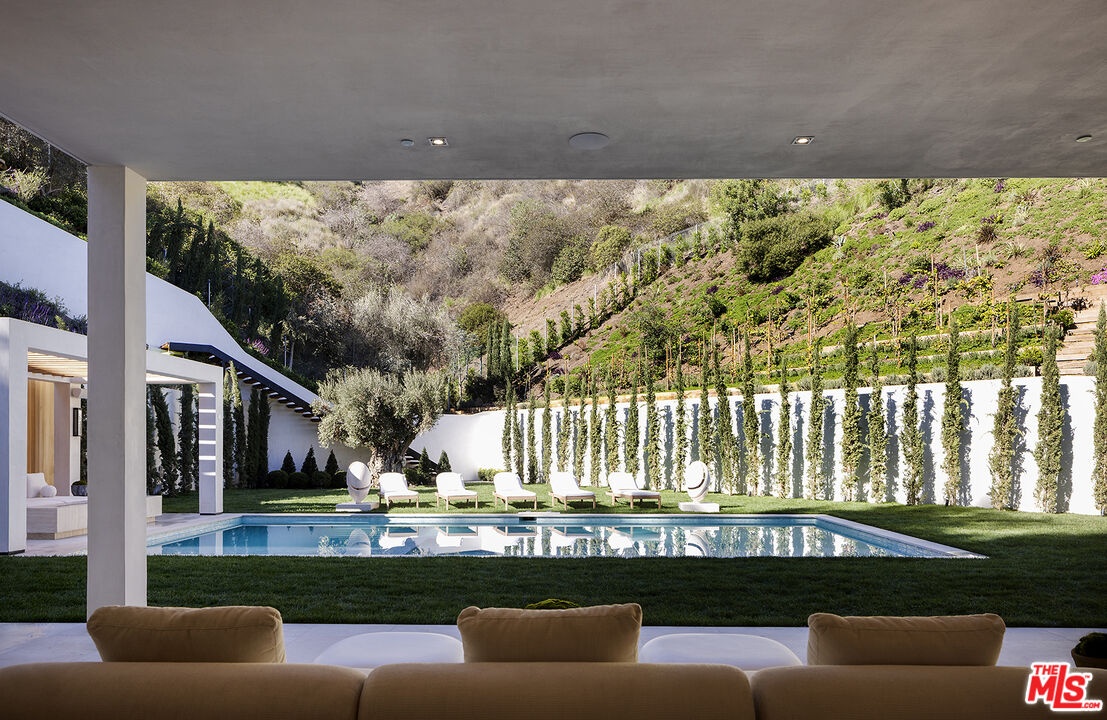 Set on one of Lower Bel Air's most coveted ridgelines, Oliveto Vale presents a rare opportunity to own a refined contemporary estate with sweeping canyon and city vistas. Quietly positioned amidst peaceful olive trees above the Bel Air Country Club, this architectural residence blends clean modern design with effortless indoor/outdoor living across its sun-filled open floor plan. Expansive walls of glass frame treetop and skyline views, while multiple terraces create an ideal backdrop for entertaining or serene retreat. The main level features generous living and dining areas anchored by a sleek gourmet kitchen with premium appliances and a large center island. The primary suite serves as a private sanctuary with a spa-inspired bath, walk-in closet, and direct access to the outdoor living spaces. Additional bedrooms are well-scaled and thoughtfully placed for comfort and privacy. The outdoors offer tranquil California living at its finest, with a sparkling pool, lush landscaping, and view-oriented lounging spaces. Moments from Westwood, Holmby Hills, Beverly Hills, and premier schools, this Lower Bel Air residence combines exclusivity, elegance, and the timeless Bel Air lifestyle. Named for the verdant olive grove, a symbol of peace, wisdom, and renewal for countless generations, Oliveto Vale promises enduring abundance and a life well lived. A masterwork piece by Sharon Ohana of CDH Builders with architecture and design by Mike Khalesi of Beverly Hills One.