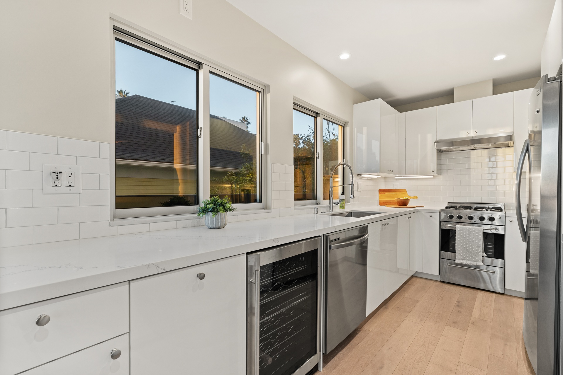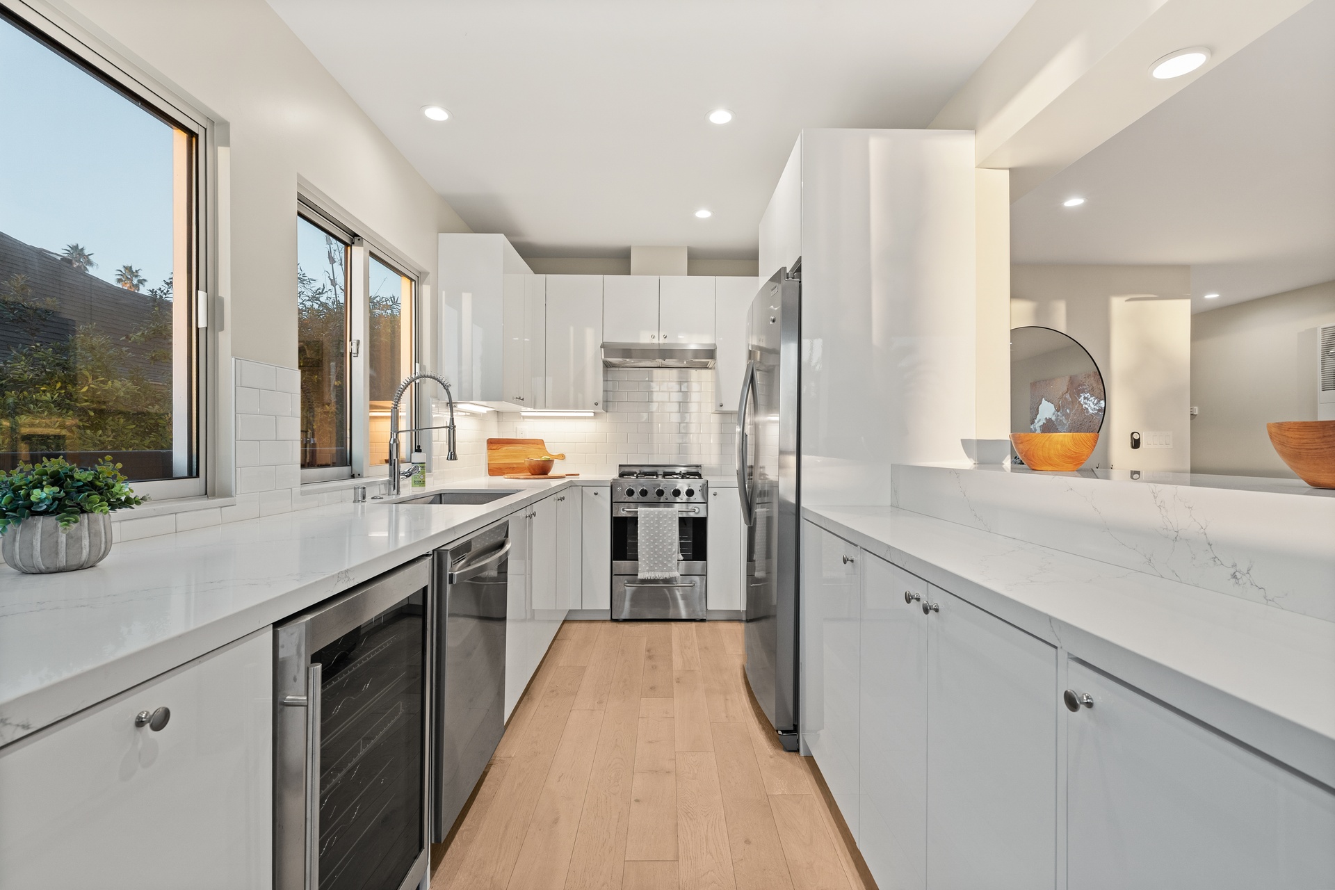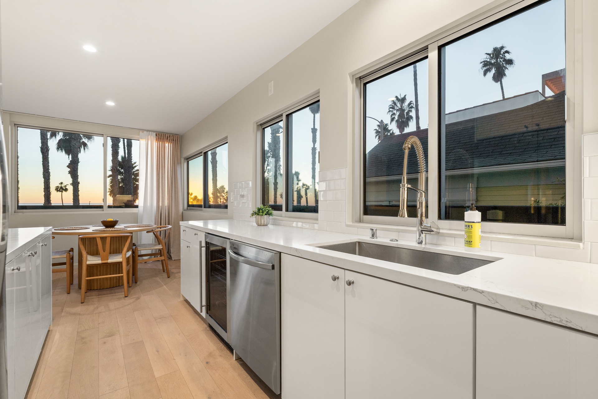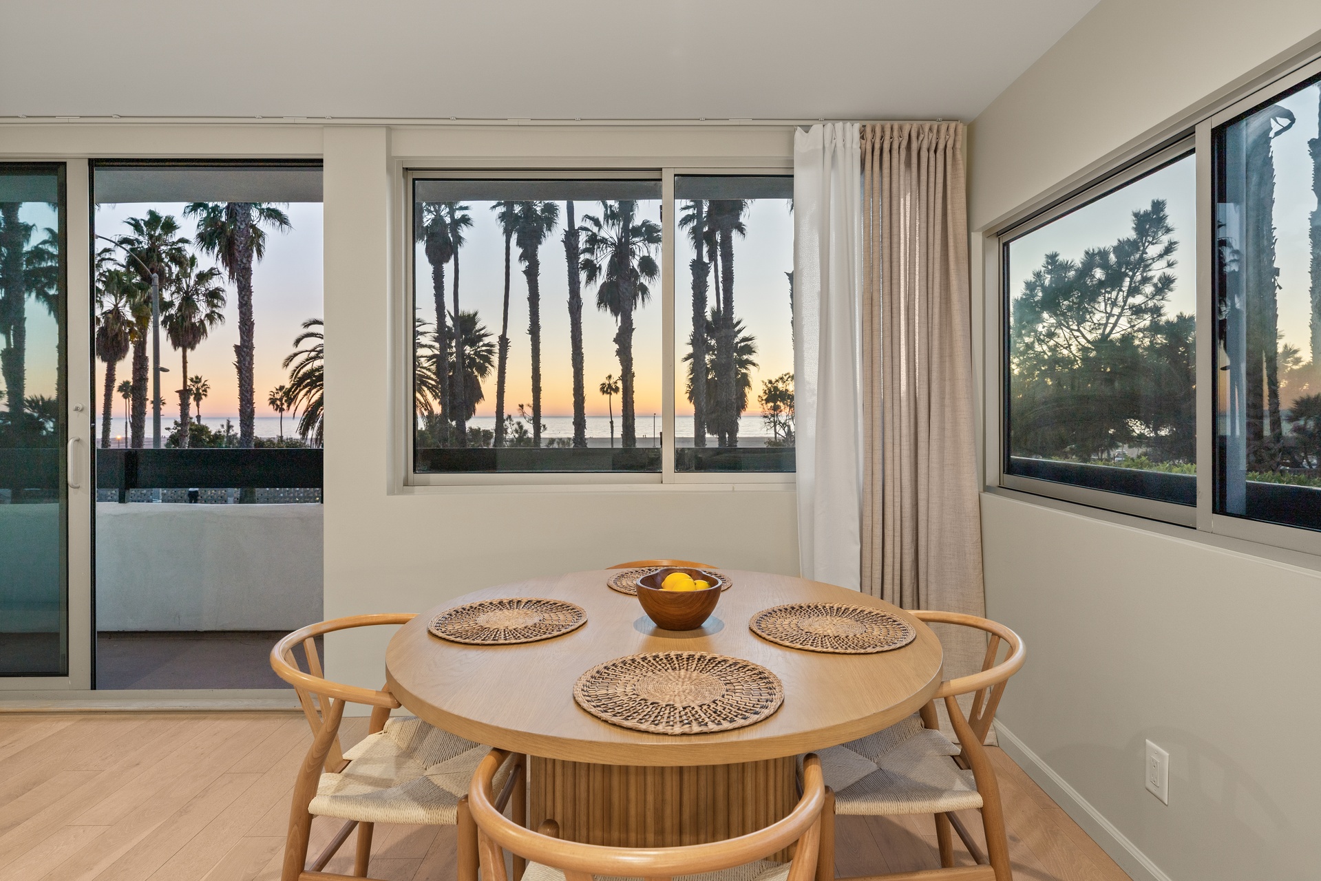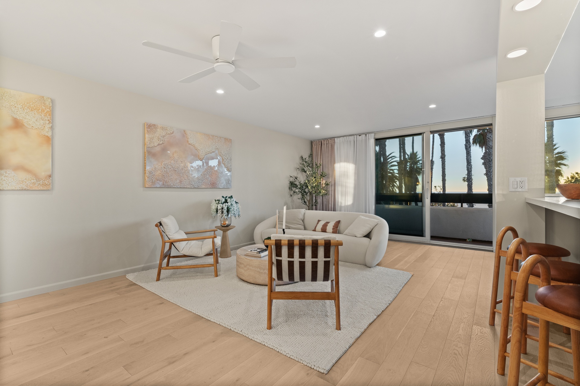 Direct Ocean Views, Santa Monica - Prime Condo Under $1.5M -Rare opportunity to own a gorgeous fully remodeled beachfront residence on Santa Monica's iconic Ocean Avenue. This light-filled home features a flowing entertainer's layout, brand-new double-pane windows and sliding doors, and beautiful hardwood flooring throughout. Enjoy unobstructed Pacific Ocean views from the living and dining areas and a spacious balcony perfect for indoor-outdoor living. The modern chef's kitchen is equipped with top-of-the-line stainless steel appliances, custom cabinetry with built-ins, a wine refrigerator, and breakfast bar. The expanded bedroom includes custom closet organizers and a luxurious spa-inspired bathroom. Additional highlights include two tandem parking spaces in the gated garage with remote-access entry. Steps from Shutters, Casa del Mar, Regent, Santa Monica Pier, Main Street dining, and oceanfront paths, this home is ideal as a primary residence, pied--terre, or lock-and-leave beach retreat. Unmatched value for direct coastal living with beautiful sunsets to enjoy.