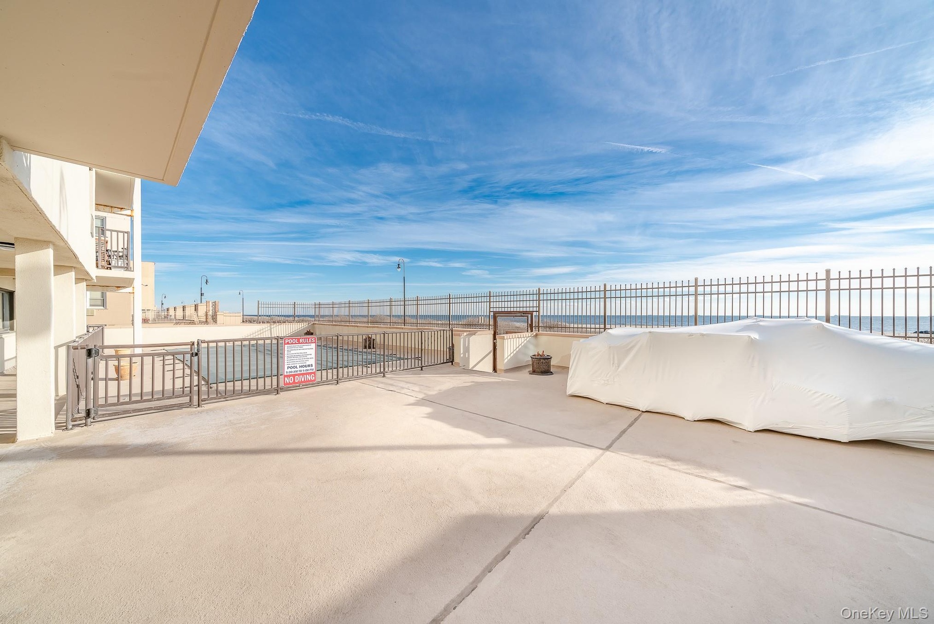 Discover beach living at its finest in this 1-bedroom coastal co-op in Long Beach! This open concept unit boasts a modern kitchen with stainless steel appliances, flowing seamlessly into the living & dining area. A versatile bonus room, complete with a beautiful barn door is perfect as a home office or a second bedroom. Step onto your terrace and soak in the ocean, the perfect backdrop for morning coffee or evening relaxation. The building offers many amenities, including a large gym, inground pool, and convenient laundry located on every floor. Located directly on the beach this is your opportunity to enjoy the sun, sand and ocean just steps from your door!