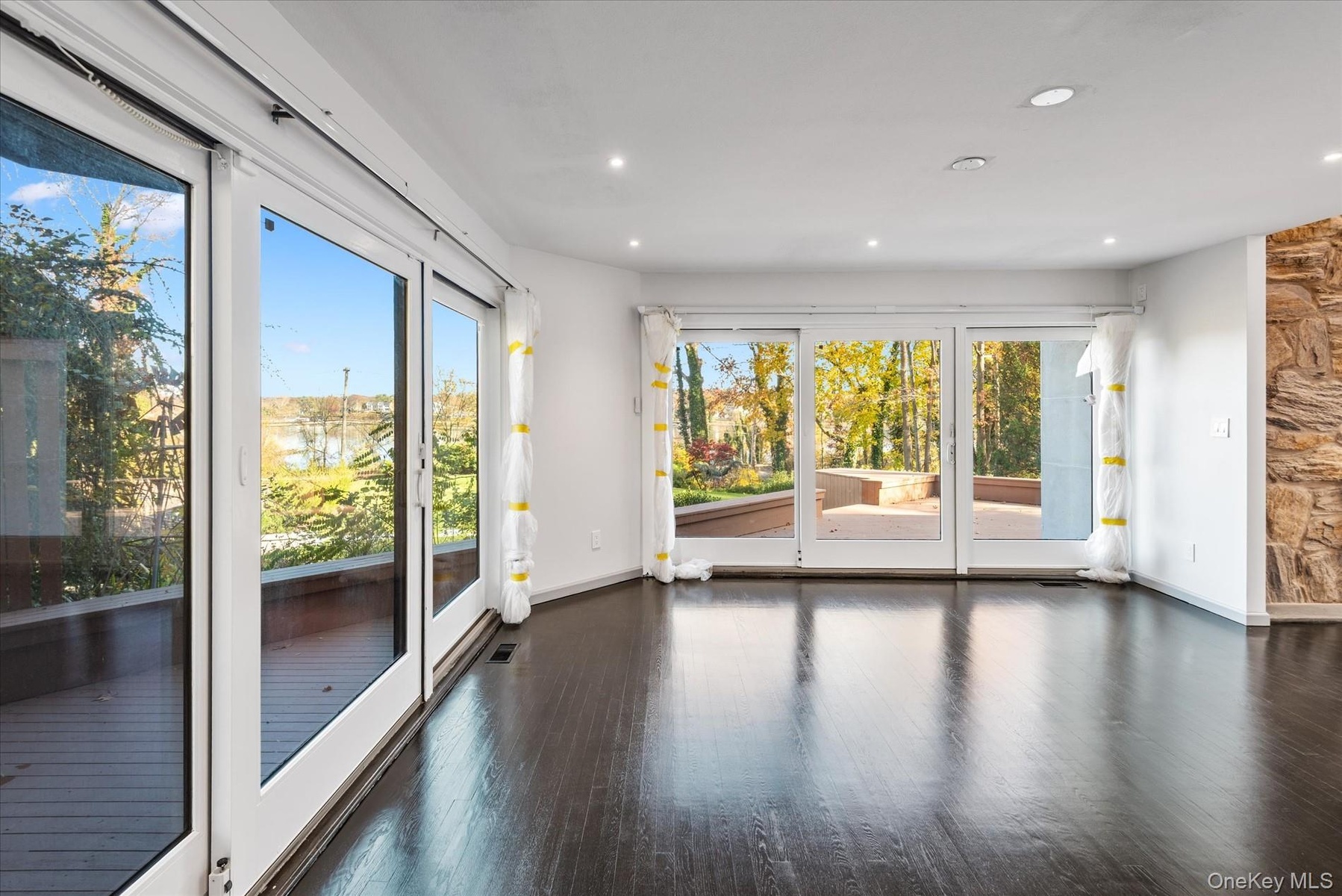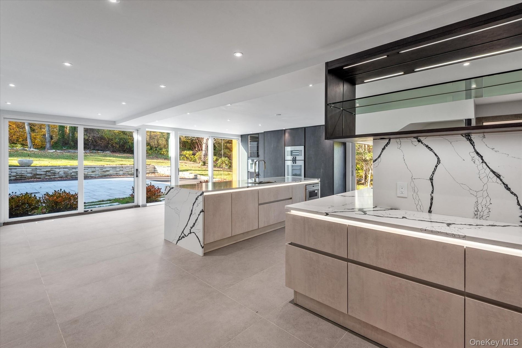 A long private driveway leads to this custom, fully renovated contemporary residence, perfectly nestled on a picturesque acre in the heart of Kings Point. Designed to maximize natural light and embrace its tranquil surroundings, the home showcases dramatic walls of glass that capture breathtaking sunrises and panoramic views of Manhasset Bay. The inviting entry foyer opens to a series of expansive, open-concept living spaces that flow effortlessly from one to the next, creating an ideal setting for both intimate gatherings and large-scale entertaining. The brand-new modern eat-in kitchen with German Leicht cabinetry and state of the art Gaggenau appliances serves as the true heart of the home—offering sleek finishes, generous workspace, and a welcoming atmosphere. A main-floor bedroom with a full bathroom provides comfort and flexibility for guests or multi-generational living. The second floor features a spacious primary suite complete with a luxurious ensuite bathroom and custom walk-in closets. Five additional bedrooms and four full bathrooms complete this level, ensuring ample space and privacy for all household members. The finished basement adds even more lifestyle options, featuring a recreation room, home theatre, and additional areas perfect for relaxation or hobbies. Set in a prime Kings Point location, the property offers both privacy and convenience—with close proximity to parks, transportation, and major highways. This exceptional contemporary home combines modern elegance, generous living spaces, and stunning water views—an extraordinary opportunity in one of the area’s most prestigious neighborhoods.