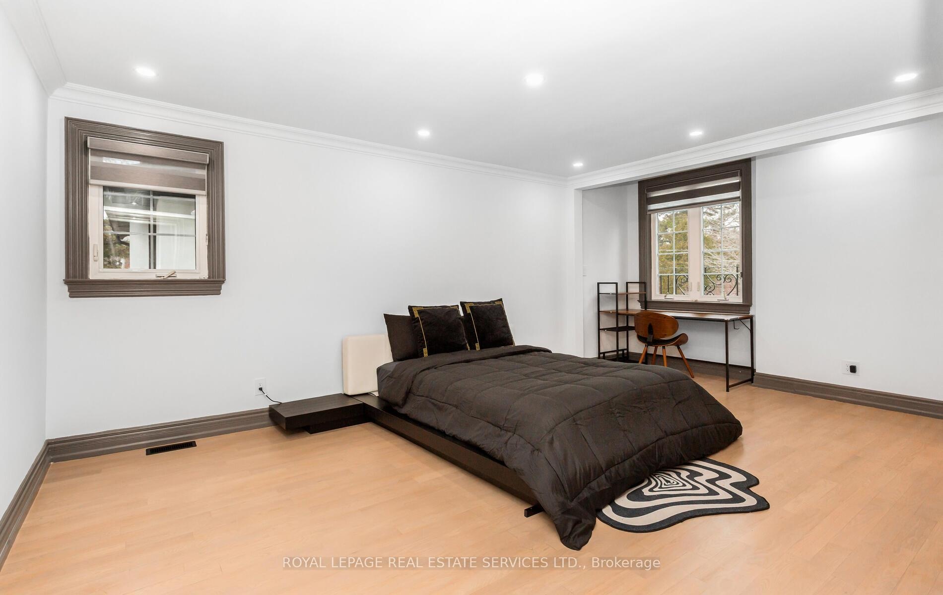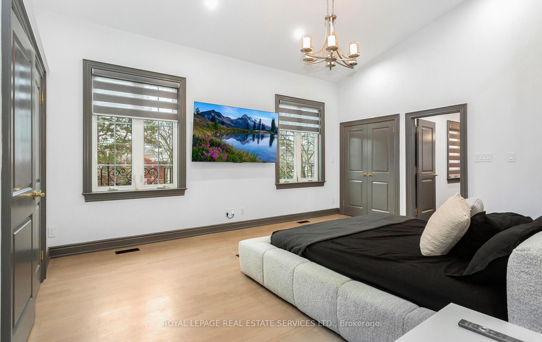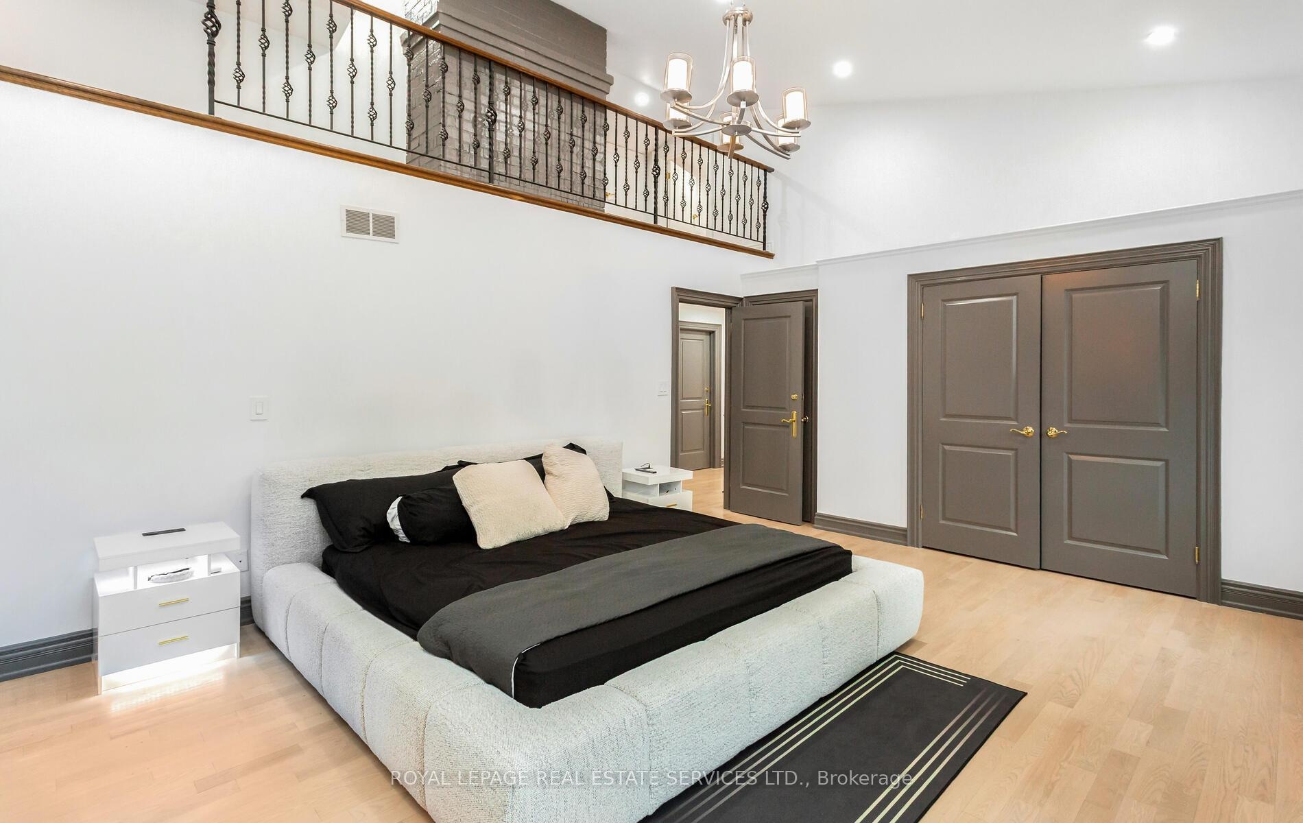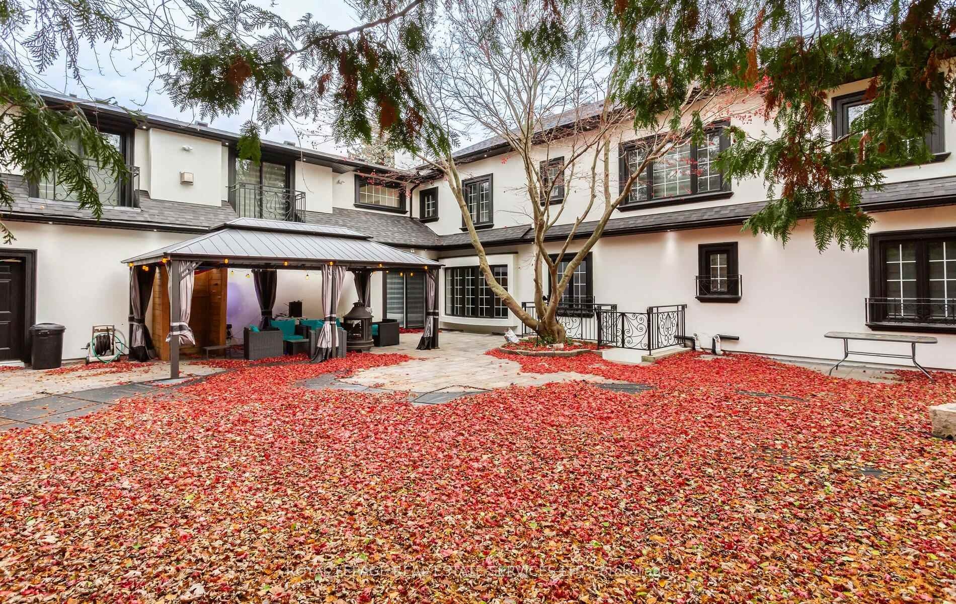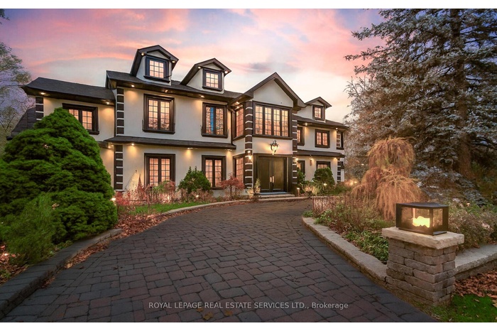 Prestigious Bridle Path - Fully Furnished Executive Rental Exceptional opportunity to lease a fully furnished luxury home in Toronto's most exclusive Bridle Path neighborhood. This impressive 5-bedroom, 9-washroom residence offers over 5,700 sq ft of above-grade living space on a premier corner lot, just steps from Edwards Gardens. Completely renovated and designed for upscale living, the home features a private, fully fenced backyard with in-ground pool, outdoor shower, and extensive patio space.A grand double-door entrance opens to a marble-floored foyer leading to elegant principal rooms, including a spacious living room with fireplace and an adjoining music room. The formal dining room offers bay windows with serene backyard views. The gourmet eat-in kitchen is equipped with high-end built-in appliances, stone countertops, center island, and custom-lit cabinetry. The family room features custom built-ins and a wood-burning fireplace.The main floor includes a large bedroom with walk-in closet and ensuite-ideal for guests, in-laws, or a nanny. The second floor offers four generous bedrooms, each with private ensuites and Jacuzzi tubs. The bright second-floor landing provides an ideal workspace and connects to a charming sunroom. A loft-style media room with two balconies and its own powder room adds exceptional additional living space.A three-car garage offers direct interior access to a generous mudroom. Hardwood floors, solid wood doors, and pot lights throughout add to the home's refined finishes. The finished basement includes a separate entrance, spacious rec room with fireplace, sauna, cedar closet, and wet bar. Exterior irrigation system and newly updated landscaping complete this exceptional rental offering.Move-in ready and fully furnished, this home provides luxury living in one of Toronto's most sought-after enclaves.