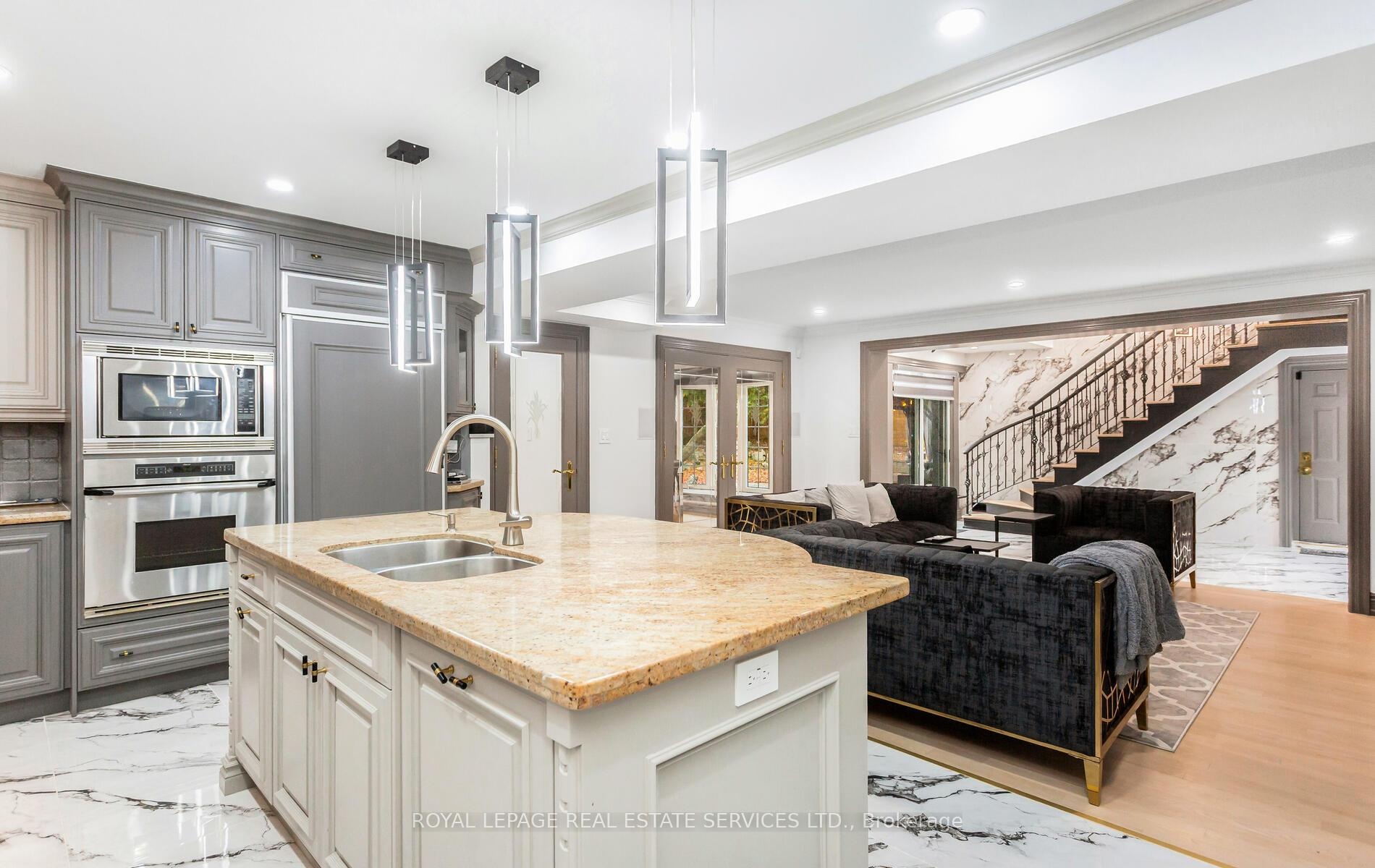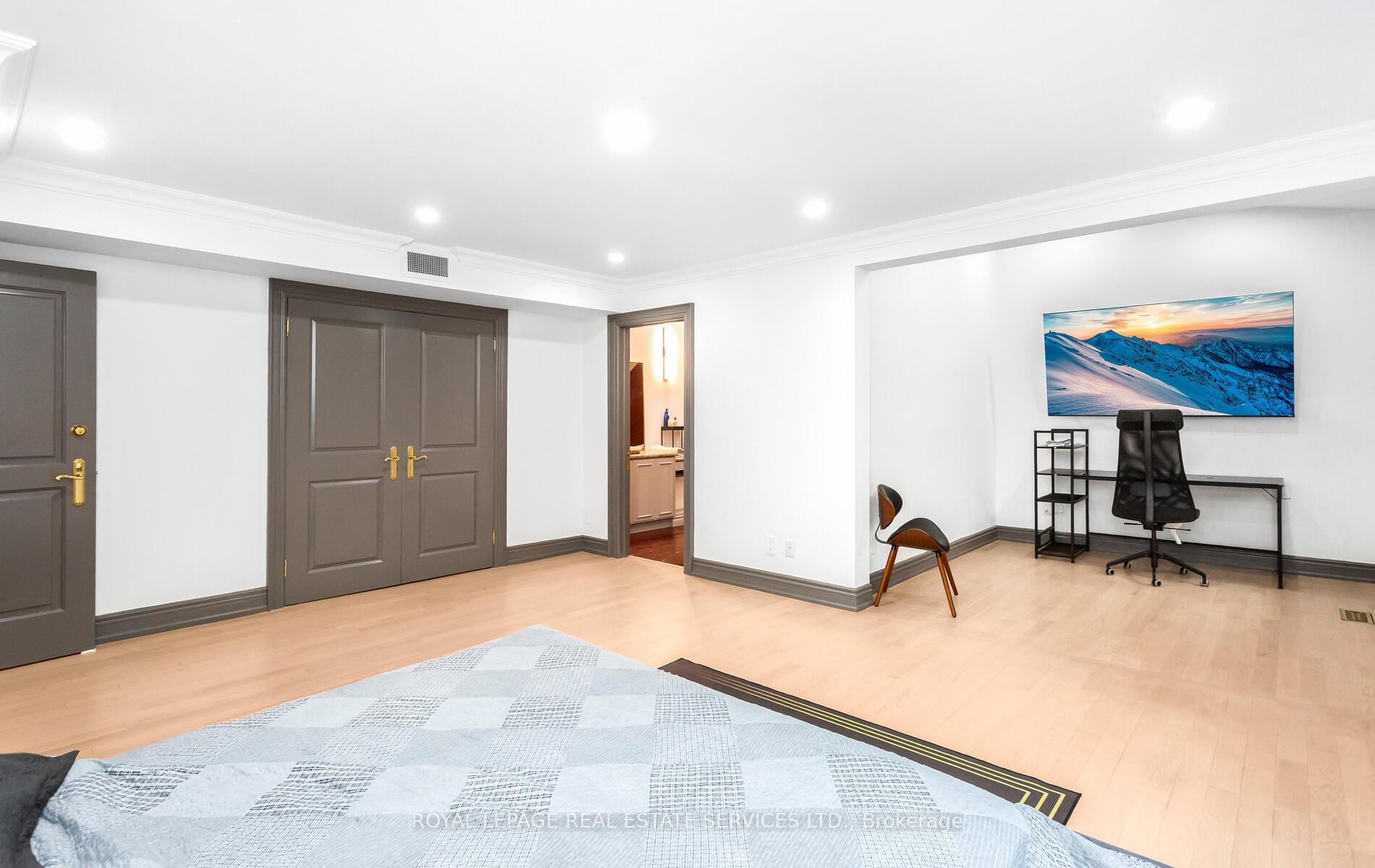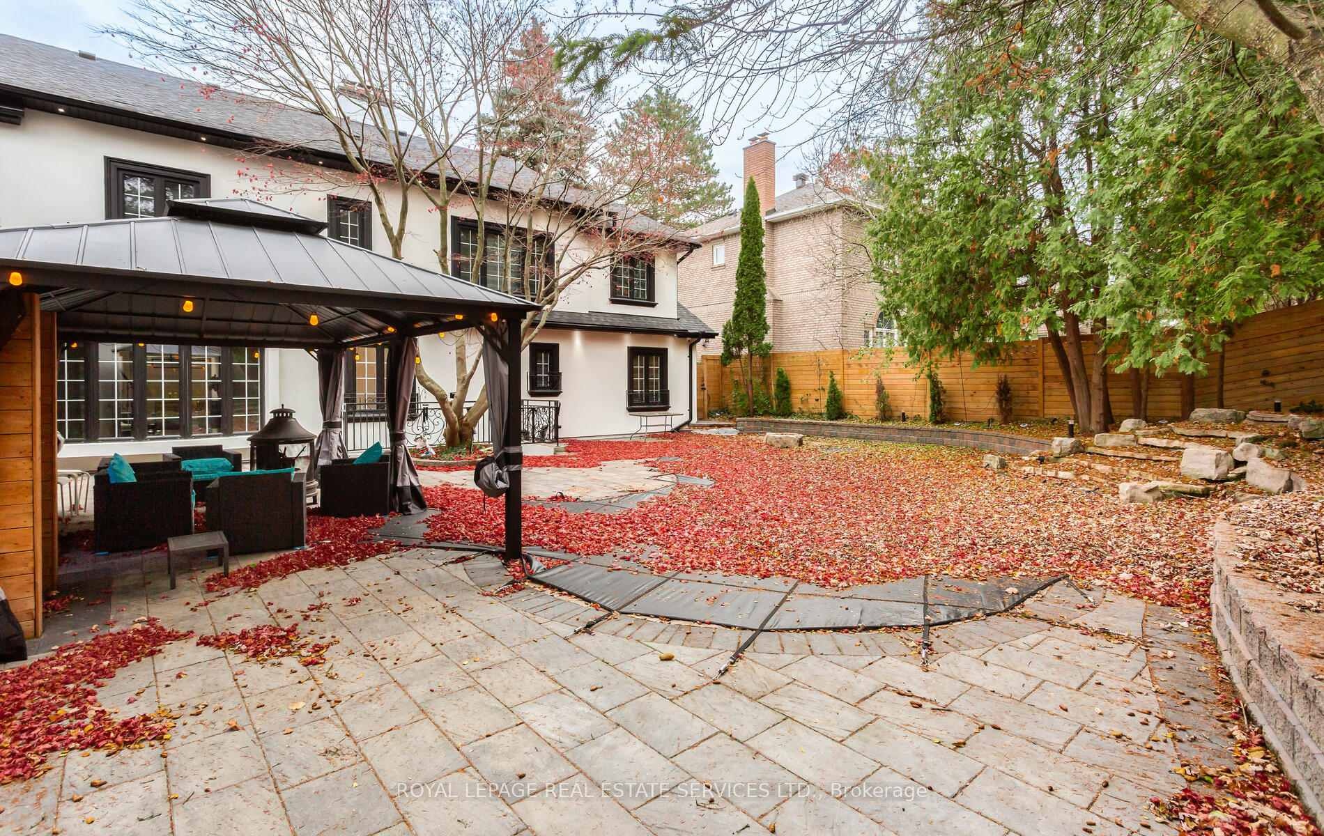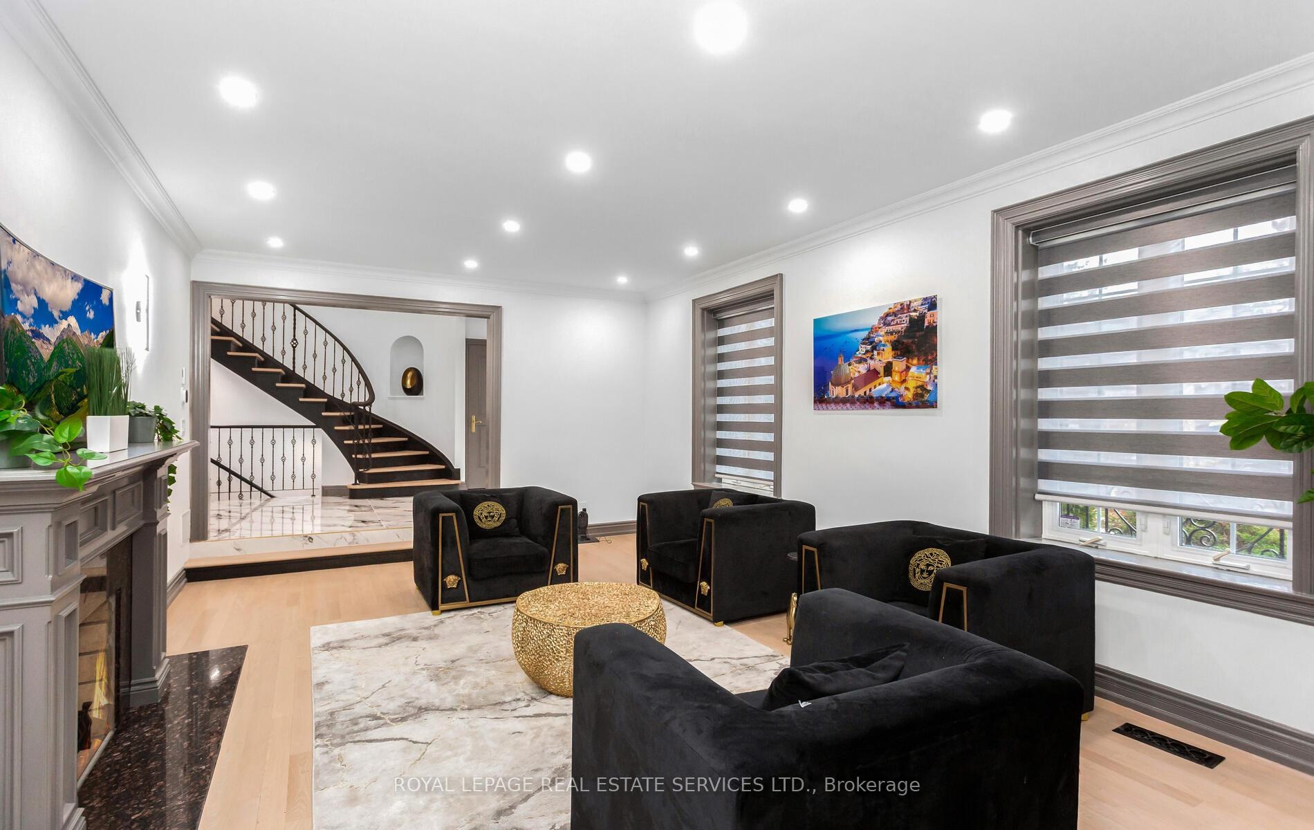 Prestigious Bridle Path - Fully Furnished Executive Rental Exceptional opportunity to lease a fully furnished luxury home in Toronto's most exclusive Bridle Path neighborhood. This impressive 5-bedroom, 9-washroom residence offers over 5,700 sq ft of above-grade living space on a premier corner lot, just steps from Edwards Gardens. Completely renovated and designed for upscale living, the home features a private, fully fenced backyard with in-ground pool, outdoor shower, and extensive patio space.A grand double-door entrance opens to a marble-floored foyer leading to elegant principal rooms, including a spacious living room with fireplace and an adjoining music room. The formal dining room offers bay windows with serene backyard views. The gourmet eat-in kitchen is equipped with high-end built-in appliances, stone countertops, center island, and custom-lit cabinetry. The family room features custom built-ins and a wood-burning fireplace.The main floor includes a large bedroom with walk-in closet and ensuite-ideal for guests, in-laws, or a nanny. The second floor offers four generous bedrooms, each with private ensuites and Jacuzzi tubs. The bright second-floor landing provides an ideal workspace and connects to a charming sunroom. A loft-style media room with two balconies and its own powder room adds exceptional additional living space.A three-car garage offers direct interior access to a generous mudroom. Hardwood floors, solid wood doors, and pot lights throughout add to the home's refined finishes. The finished basement includes a separate entrance, spacious rec room with fireplace, sauna, cedar closet, and wet bar. Exterior irrigation system and newly updated landscaping complete this exceptional rental offering.Move-in ready and fully furnished, this home provides luxury living in one of Toronto's most sought-after enclaves.