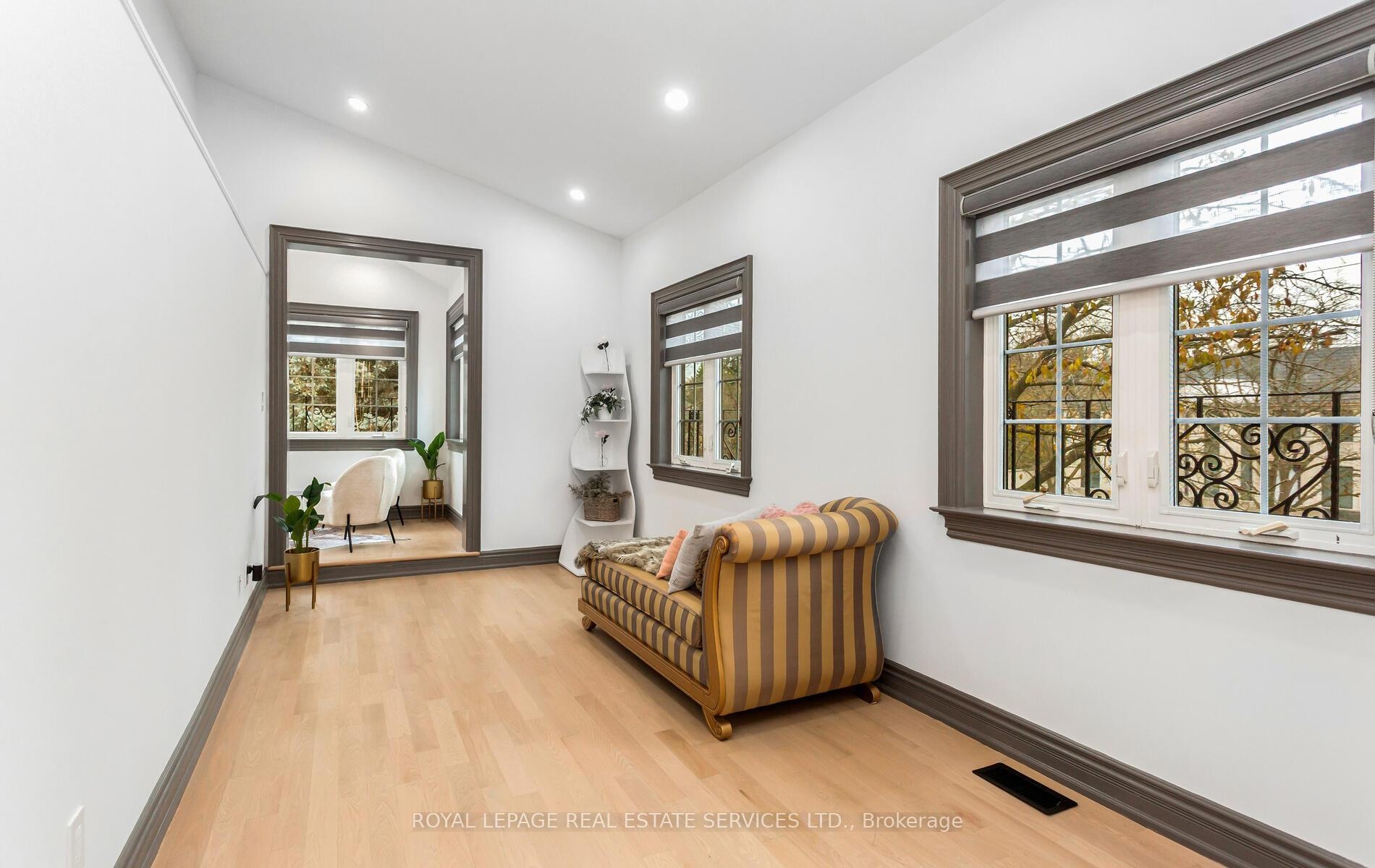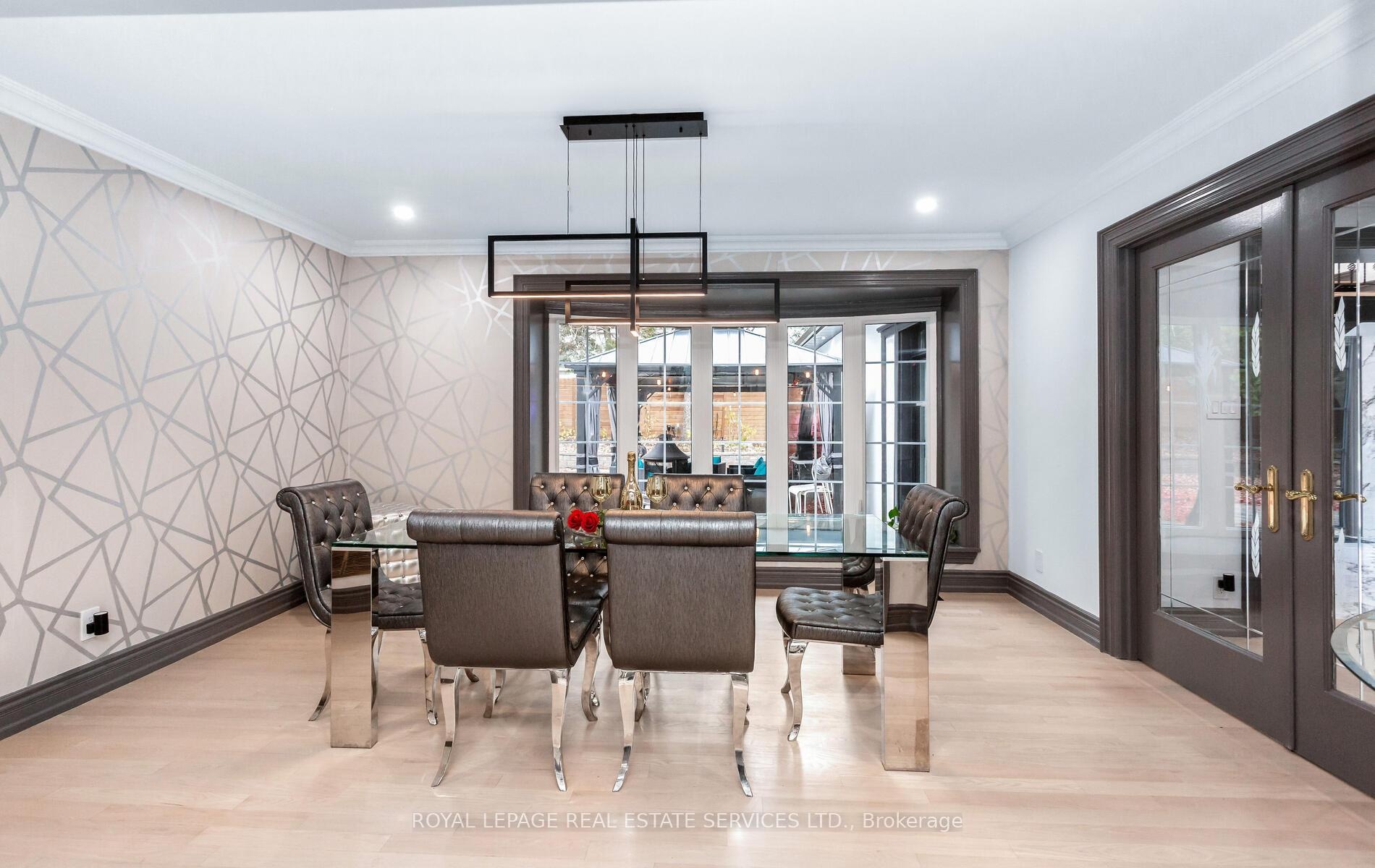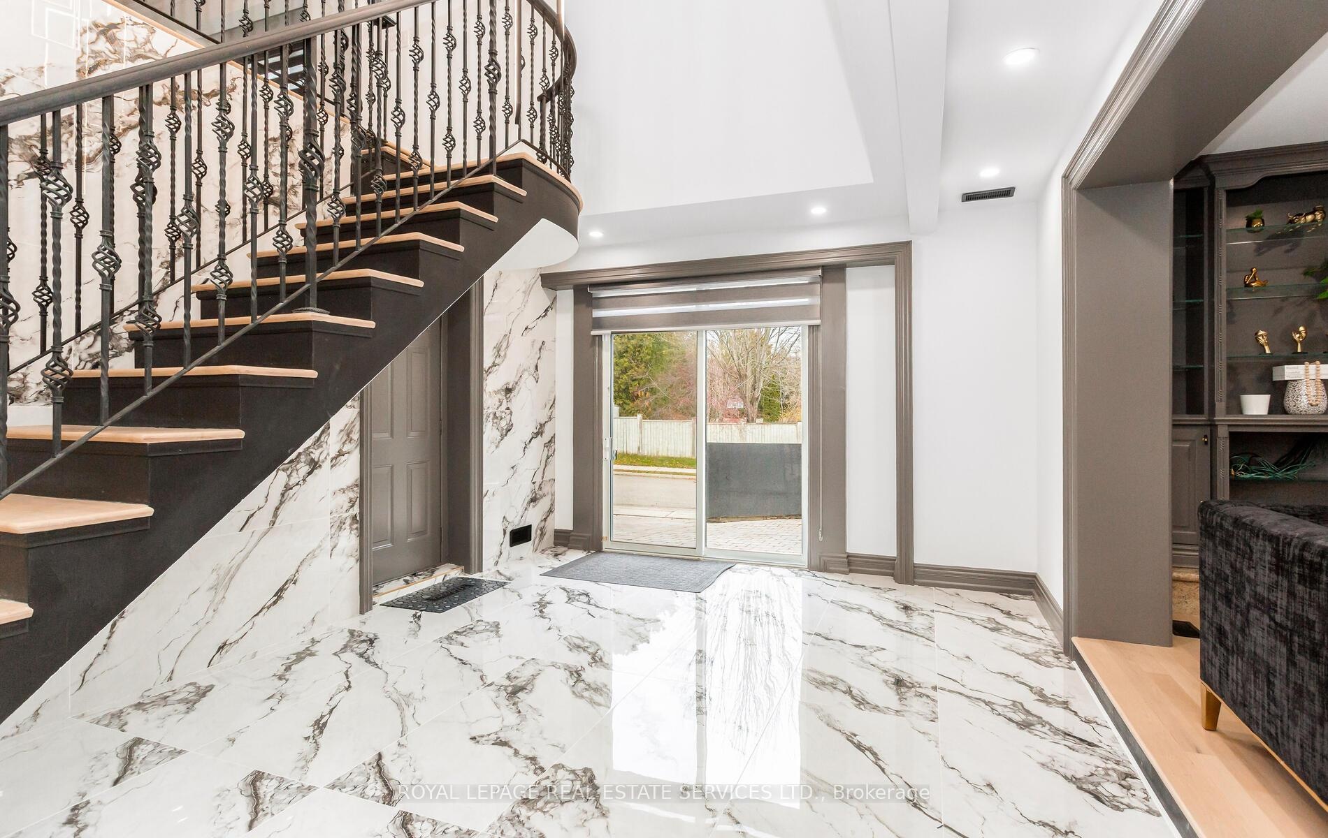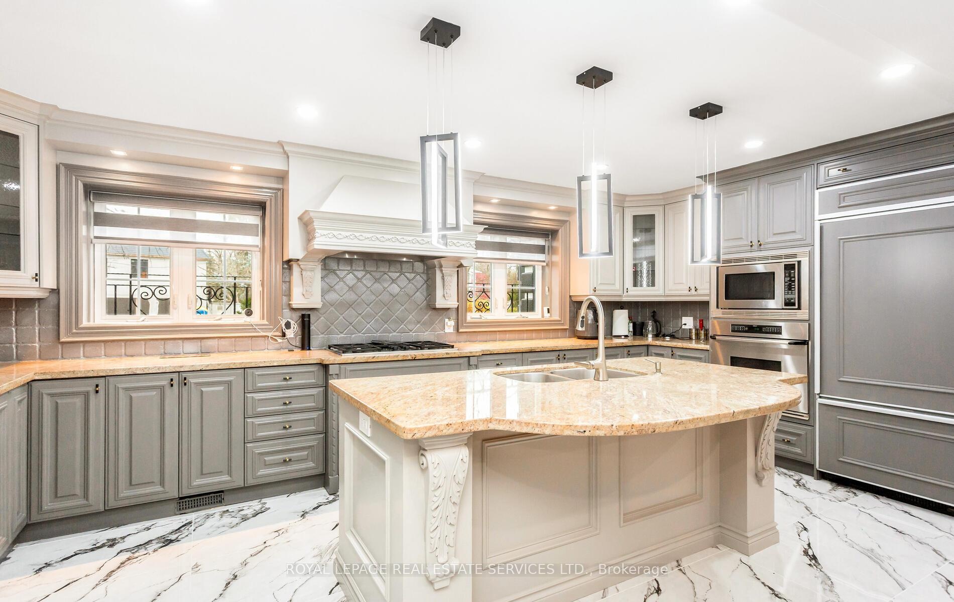 Prestigious Bridle Path - Fully Furnished Executive Rental Exceptional opportunity to lease a fully furnished luxury home in Toronto's most exclusive Bridle Path neighborhood. This impressive 5-bedroom, 9-washroom residence offers over 5,700 sq ft of above-grade living space on a premier corner lot, just steps from Edwards Gardens. Completely renovated and designed for upscale living, the home features a private, fully fenced backyard with in-ground pool, outdoor shower, and extensive patio space.A grand double-door entrance opens to a marble-floored foyer leading to elegant principal rooms, including a spacious living room with fireplace and an adjoining music room. The formal dining room offers bay windows with serene backyard views. The gourmet eat-in kitchen is equipped with high-end built-in appliances, stone countertops, center island, and custom-lit cabinetry. The family room features custom built-ins and a wood-burning fireplace.The main floor includes a large bedroom with walk-in closet and ensuite-ideal for guests, in-laws, or a nanny. The second floor offers four generous bedrooms, each with private ensuites and Jacuzzi tubs. The bright second-floor landing provides an ideal workspace and connects to a charming sunroom. A loft-style media room with two balconies and its own powder room adds exceptional additional living space.A three-car garage offers direct interior access to a generous mudroom. Hardwood floors, solid wood doors, and pot lights throughout add to the home's refined finishes. The finished basement includes a separate entrance, spacious rec room with fireplace, sauna, cedar closet, and wet bar. Exterior irrigation system and newly updated landscaping complete this exceptional rental offering.Move-in ready and fully furnished, this home provides luxury living in one of Toronto's most sought-after enclaves.