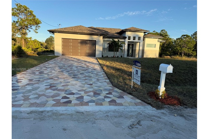 Welcome to this gorgeous 4/2/2 new construction home featuring luxury upgrades and thoughtful design throughout. The home features a bright, open layout, High ceilings, quartz countertops, shaker cabinets, walk-in custom-built closets, a spacious master suite, and a large lanai that is already set up for an outdoor kitchen. Ideal for entertaining. The backyard provides plenty of room for gatherings, gardening, or future additions like a Pool. Nestled in a beautiful, Quiet Lehigh Acres Neighborhood close to top-rated schools, shopping, and major roads, including SR-82, this home offers convenience and comfort with a short commute to Fort Myers. A must-see property that truly checks all the boxes. If you're seeking peace, quiet, and a true sense of tranquility, this home offers exactly that.