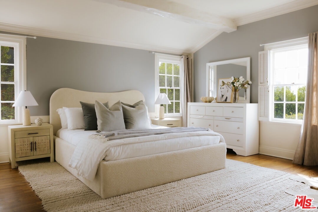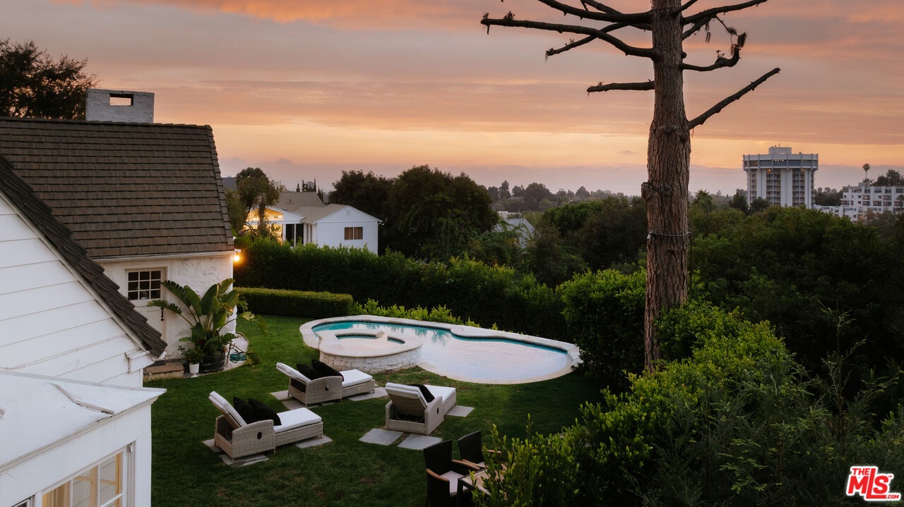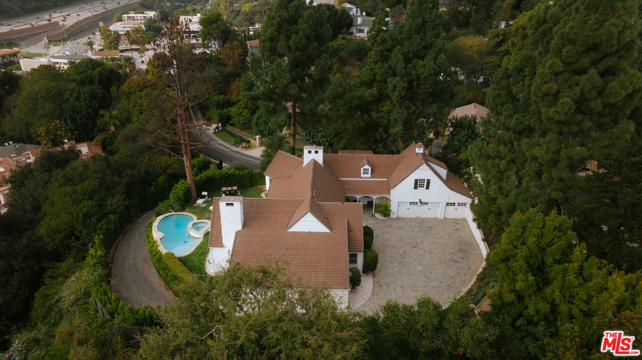 Set beyond private gates on one of Bel Air's most esteemed streets, this Bellagio Road estate offers exceptional privacy and timeless character on an expansive, secluded setting. A long gated driveway framed by towering pine trees leads to the hilltop residence, creating an arrival experience that feels both grand and entirely removed from the city below. Originally envisioned by architect Gerard Colcord, admired for designing homes for many of Hollywood's most notable figures, the property reflects the romance and craftsmanship that define his enduring legacy. The residence includes a collection of inviting bedrooms and bathrooms, each positioned to enjoy serene treetop views and abundant natural light. Classic Colcord detailing, wide plank flooring, exposed beams, custom millwork, multi pane windows, and thoughtful built ins fill the interiors with the warmth and charm that have come to symbolize early Bel Air architecture. A separate bonus space with its own bathroom provides added versatility for guests, work, fitness, or creative use while maintaining privacy from the main residence. French doors throughout open to a generous veranda overlooking the lush lawn, sparkling pool, soothing spa, and a picturesque gazebo. The grounds offer effortless indoor and outdoor living along with a true sense of retreat. Mature landscaping and verdant surroundings ensure complete privacy while remaining only moments from premier Westside shopping, dining, and top public and private schools. This Bellagio Road estate is a rare offering in Bel Air, secluded, romantic, and an extraordinary opportunity to own a legacy property in one of the most coveted settings in Los Angeles.