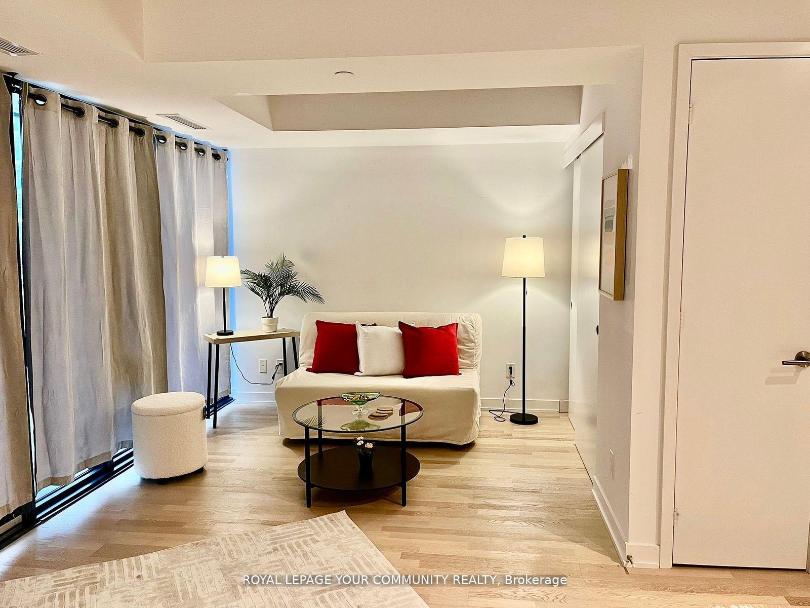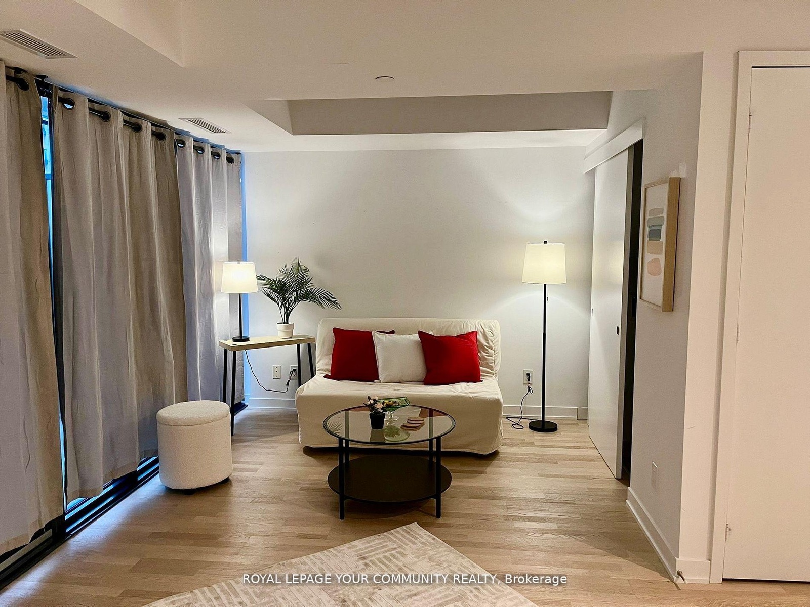 Fully furnished! Live in the heart of vibrant Yonge & Eglinton! This sleek well-planned studio is perfect for all professionals or as a stylish pied-à-terre in midtown Toronto. Featuring floor-to-ceiling windows, light laminate flooring, quartz countertops, a stainless steel backsplash, and integrated appliances, this modern space is both functional and inviting. Enjoy your private balcony, the perfect spot for morning coffee. With a Walk Score of 96 and Transit Score of 92, you're just steps from the TTC, subway, LRT, Loblaws, LCBO, trendy restaurants, and shopping. Plus, enjoy seamless access to the downtown core, Financial and Entertainment districts, and top Toronto attractions. Furniture is included in the lease. Don't miss this incredible opportunity to live in one of the city's most dynamic neighbourhoods! New Sofa-bed, rugs, cabinets, shelves, chairs, dishes, tables, etc, Ready to move In.