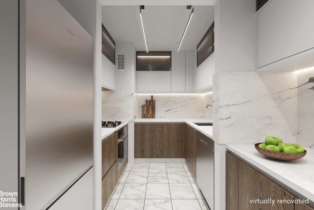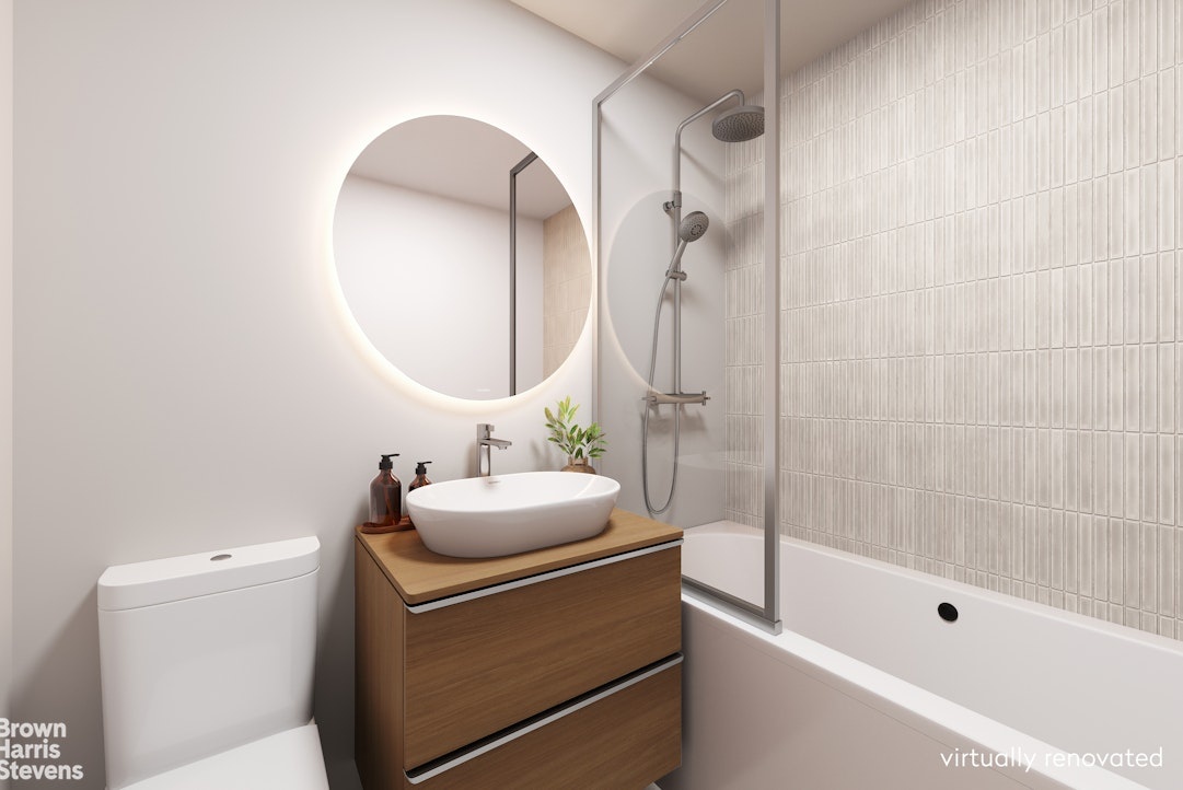Residence 8L is bathed in natural light throughout the day and enjoys a fresh partial renovation, including brand-new flooring and baseboards. The kitchen and bathroom are ready for your personal touch, offering an easy path to transform this home into something truly your own. For those who prefer an open layout, the kitchen can be opened to the main living area to create a modern, airy flow.