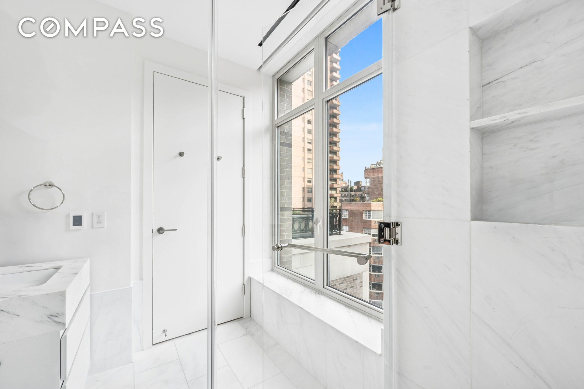 The separate bedroom wing features 7” white oak floors and a serene primary suite with two large closets and two private terraces overlooking Madison Avenue. The spa-quality primary bath is finished in Bianco Oro marble, with a freestanding tub, radiant heat, custom millwork, and Waterworks burnished nickel fixtures. Secondary bedrooms offer spacious closets and polished en-suite baths with radiant-heated Calacatta marble and bespoke finishes.