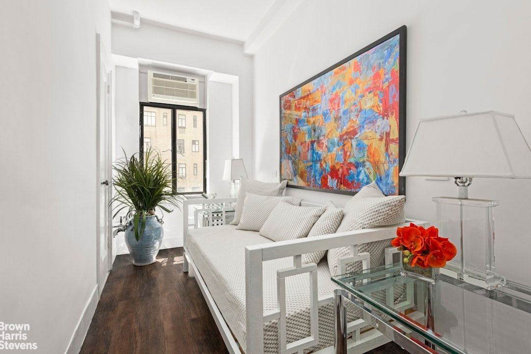 This expansive six-room home spans over 2,000 square feet and enjoys abundant natural light from both northern and southern exposures. A semi-private elevator landing opens into a gracious entry gallery, offering an impressive sense of arrival and a seamless flow into the home's well-proportioned rooms.