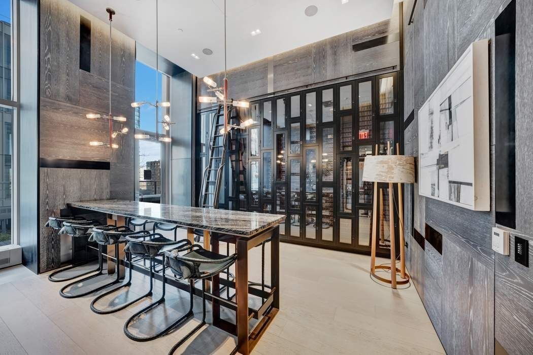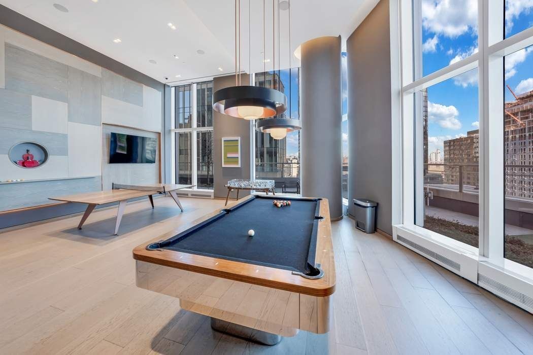 24-hour attended lobby, concierge, package and cold storage, stroller valet, pet spa, bike room, resident lounges, landscaped terrace with grills and firepit, children’s indoor and outdoor play areas, screening and performance room, chef’s kitchen, wine library, study, game room, full fitness center with studios, rock climbing wall, indoor pool, sauna, hot tub, squash/basketball court, and the highest residential rooftop infinity pool in the Western Hemisphere. Professionally managed by Extell Management Services.