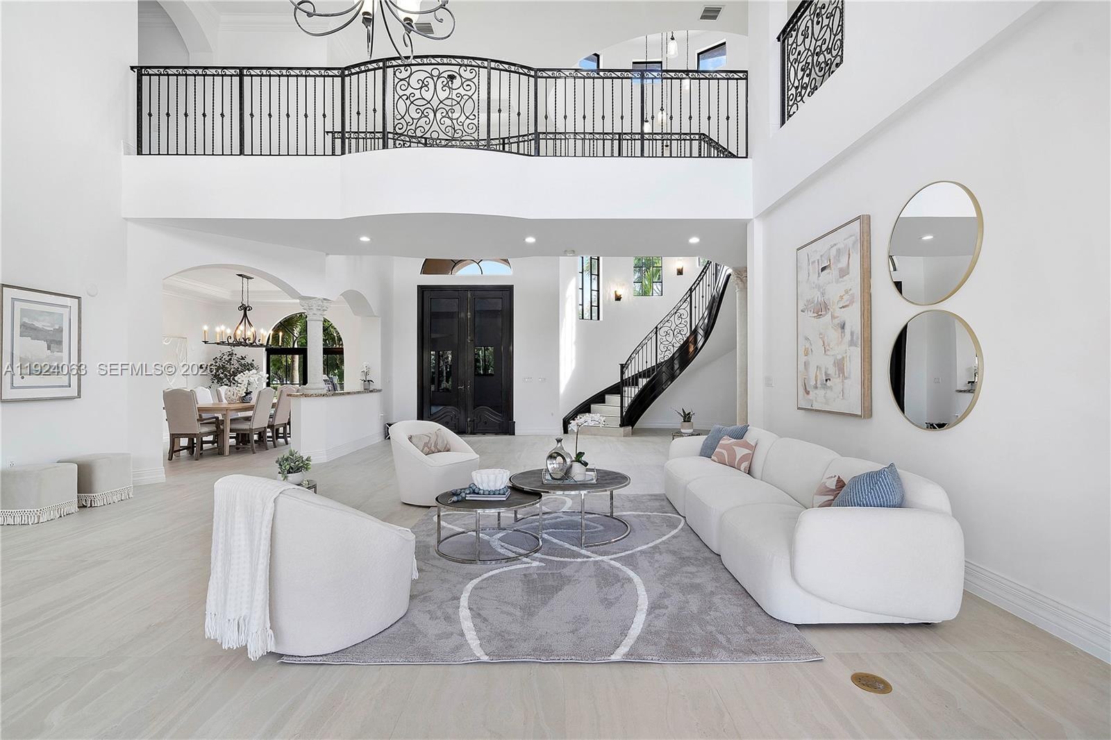 Price adjusted! Discover your dream home in this stunning 8,887 SQFT, 6,953 SQFt under AC, Mediterranean masterpiece (original floor plans are included within the pictures), blending elegance and serenity on 1.42 acres. This bright, large yet warm retreat was substantially remodeled in 2025, boasting a smart floor plan, sprawling high ceilings, perfect for entertaining and relaxing, 6 elegant suites + extra 1/2 bathroom, open-concept Chef's kitchen with new Thermador appliances, formal dining, expansive home theater with full bar, an additional entertaining area with bar upstairs and an office/convertible room. The cabana suite on the first floor offers convenient independent entrance from the pool and from 2nd garage and/or from side driveway (good as 2nd primary bedroom or guests). Resort-style backyard oasis with Pool/Spa with new systems, BBQ ready Gazebo, lush landscape and mango tree, sprinklers. Elevator-ready, 2 laundry rooms, 2-car garages (for 4 cars) + ample parking. Manmade pond with fountain, and an excellent drainage system. Prime location near great Schools, Panthers Stadium, Ft. Lauderdale Airport and shopping. Make this rare gem yours!