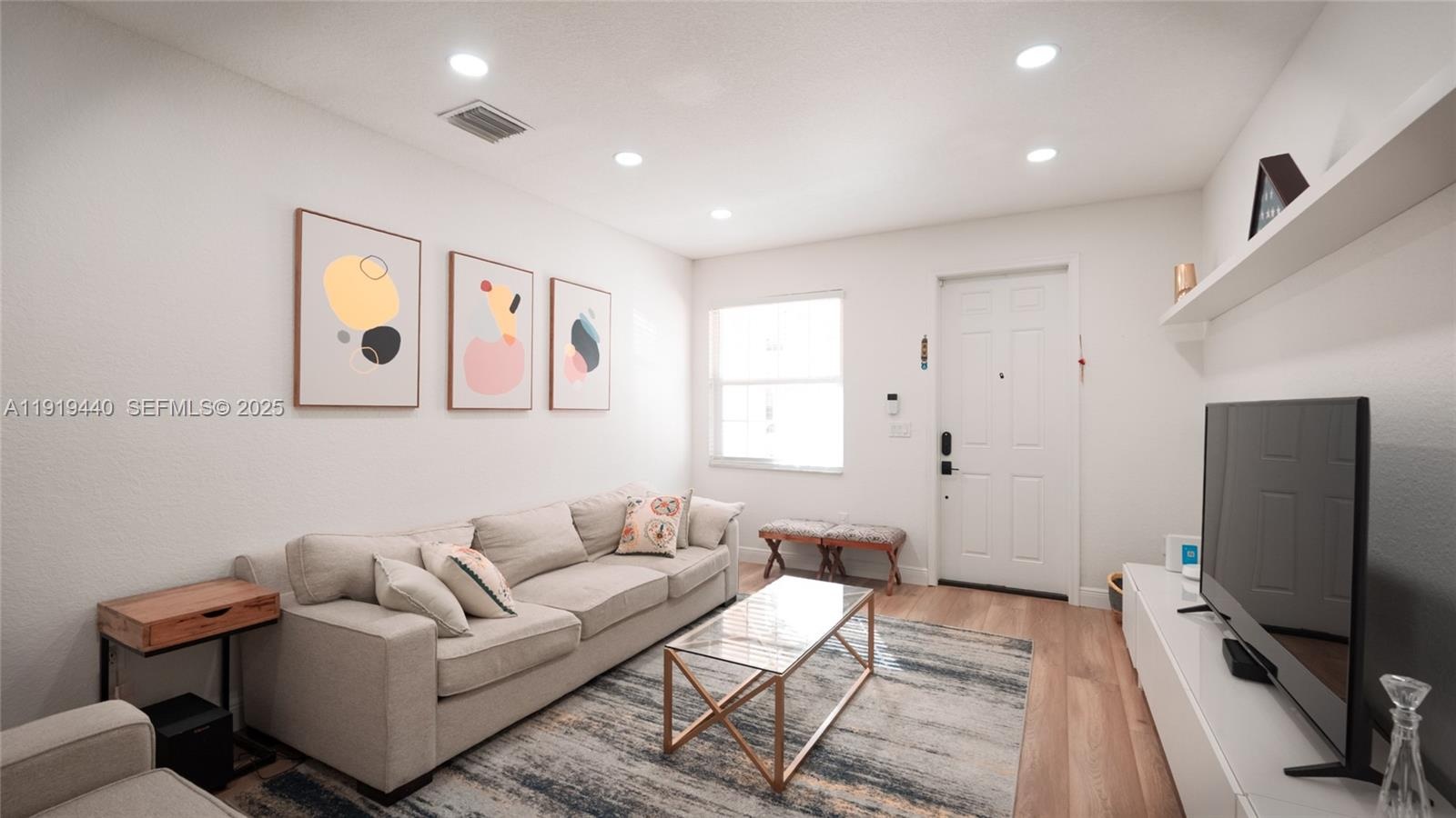 Welcome home to this beautifully upgraded and move-in-ready 3 bedroom, 2.5 bathroom townhouse with a one-car garage and a full two-car paved driveway—rare and incredibly convenient. Enjoy sleek laminated flooring throughout with no carpet, a renovated kitchen filled with natural light and generous storage, and a spacious open-concept dining and family room perfect for entertaining or everyday living. The oversized primary suite features a huge walk-in closet with custom built-ins and a bright, modern bathroom. Impact windows provide peace of mind, energy efficiency, and a quieter interior. A separate second-floor laundry room adds everyday convenience. Step outside to your private, peaceful patio—perfect for relaxing, gardening, or enjoying your morning coffee. FHA approved, low HOA, located in a safe, friendly community close to supermarkets, shopping, and dining. This home shows true pride of ownership, make it your own now.