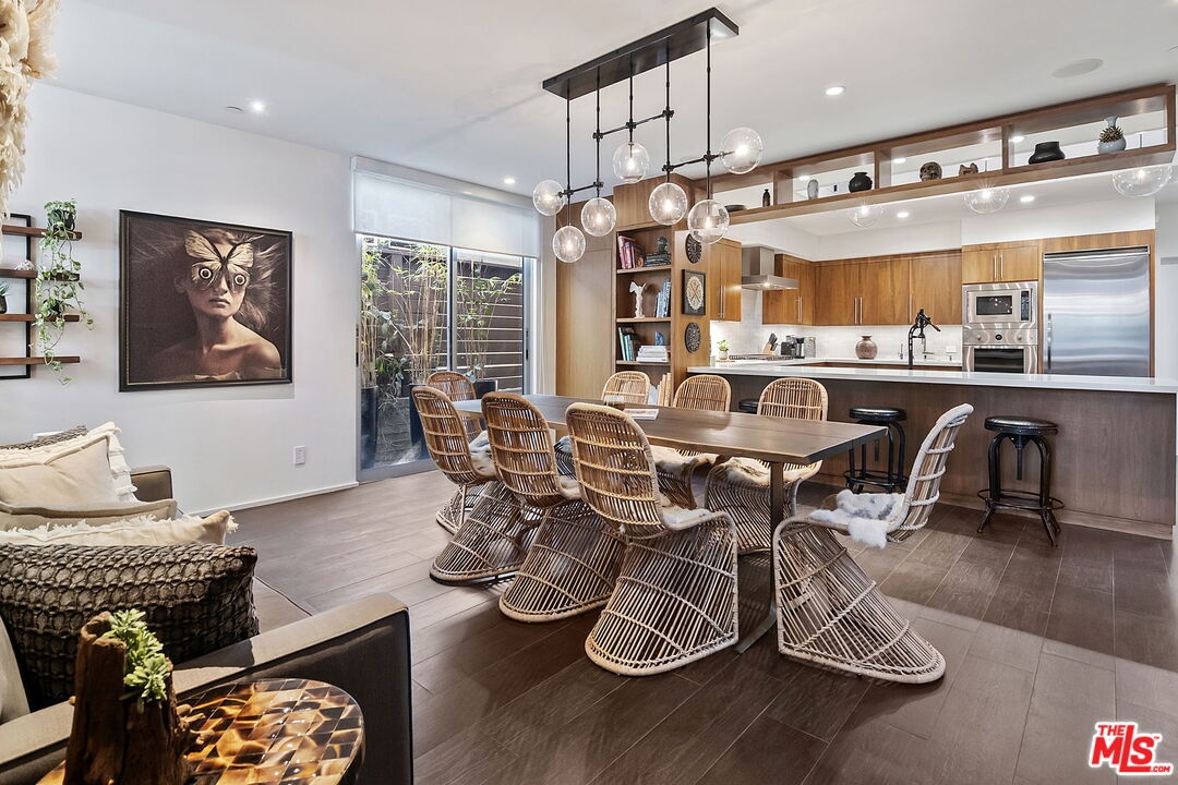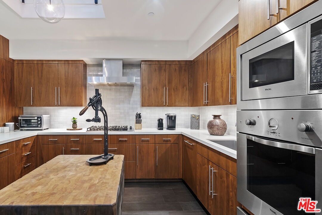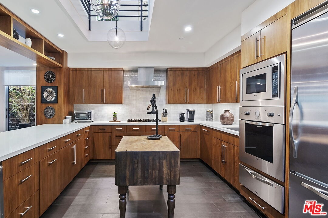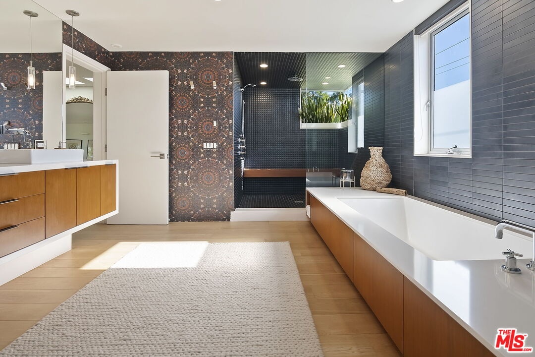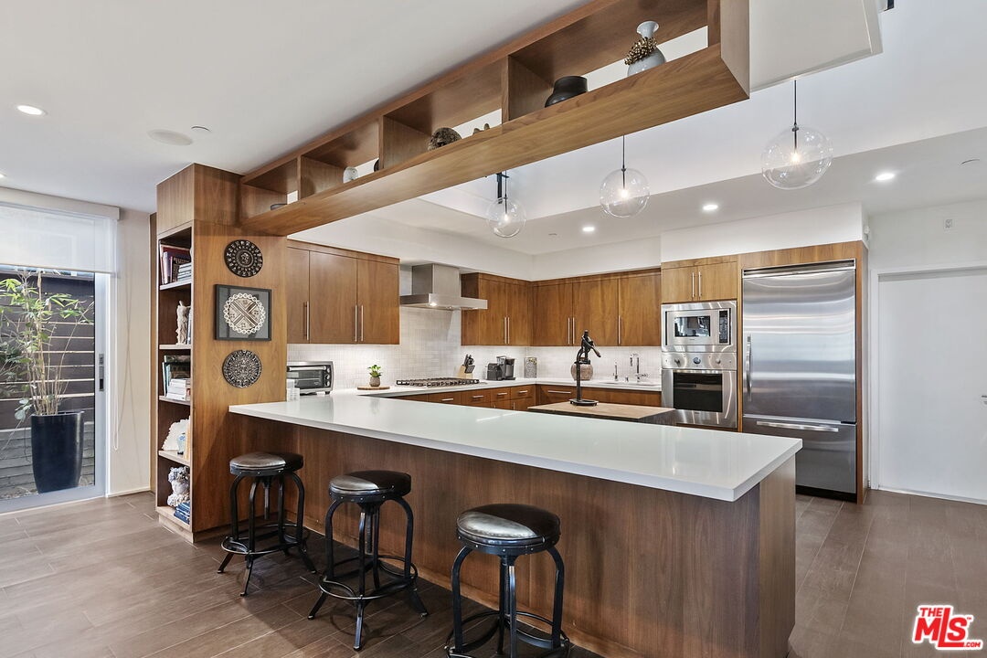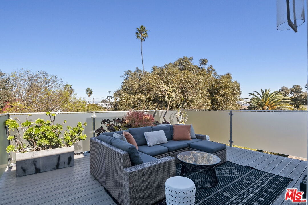 Sophisticated fully furnished Venice Architectural. Designer curated, ultra private compound, bright and airy, just off Abbot Kinney, on the "quiet" side of Cabrillo Ave. Seen on an episode of NBC's OPEN HOUSE show. Dreamy creative spaces with tons of natural light. 3 secure parking spaces, 2 garaged, and all 3 gated. Gentle entry fountain leads to a voluminous living room with RH chandelier, fireplace, and rich walnut millwork throughout downstairs level. Cozy heated floors. Automated shades. Gourmet Chef's Kitchen and stylish boho-chic Dining room. Dramatic staircase leads to second story with 2 generous bedrooms, a wrap-around corridor, full bath, and a laundry room. Entire third story is a luxurious master suite, 15-ft ceiling in the bedroom with Velux skylights that open to the sky. See the stars at night through the ceiling or cover the skylights with automated shades. A dressing area/sitting room leads to a giant walk-in closet, and a sumptuous spa-like bathroom with oversized shower & bathtub. Outside master bedroom is a spacious deck with fireplace and fountain. On the top level is an enormous, 360 degree view rooftop deck with firepit and plenty of space to accommodate a large group. In total, approximately 1,700 Sq Ft of usable, peacefully quiet outdoor space. Additional features include built-in BBQ, outdoor shower, Central AC, SONOS sound system, and gorgeous mature trees with vibrant planters throughout. A creatively inspiring property, not to be missed. Lease term could potentially start as early as 12/15/25. Owner is seeking an 18 month lease but willing to negotiate.