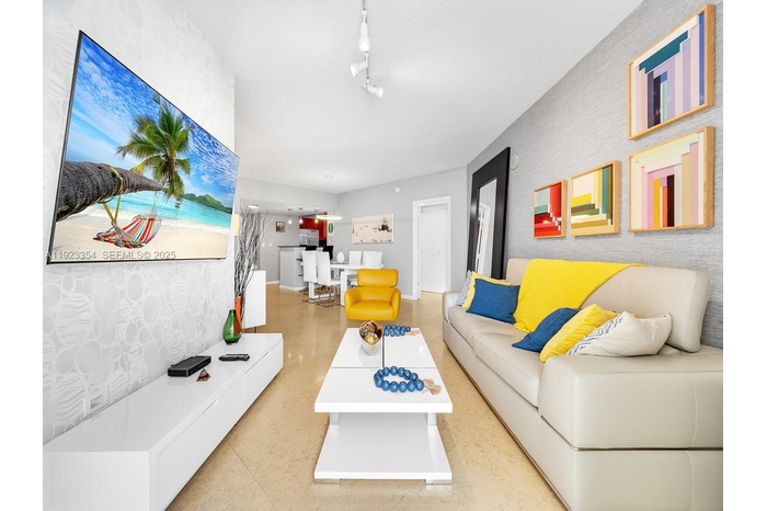 Relish in the spectacular sunsets and exceptional amenities, including a pool right on the beach. This magnificent condo features two bedrooms, two and a half bathrooms plus a den, spanning 1,637 square feet with marble flooring, in-unit laundry, and unobstructed views of the oceanfront and intercoastal from three balconies. It's ideally situated close to the pier, fine dining, Bal Harbor Shops, Aventura Mall, Miami Beach, airports, and major highways Investors will appreciate the absence of rental restrictions; short-term leases are permitted up to 12 times annually. This luxurious, pet-friendly, oceanfront property provides valet parking for 2 Vehicles.