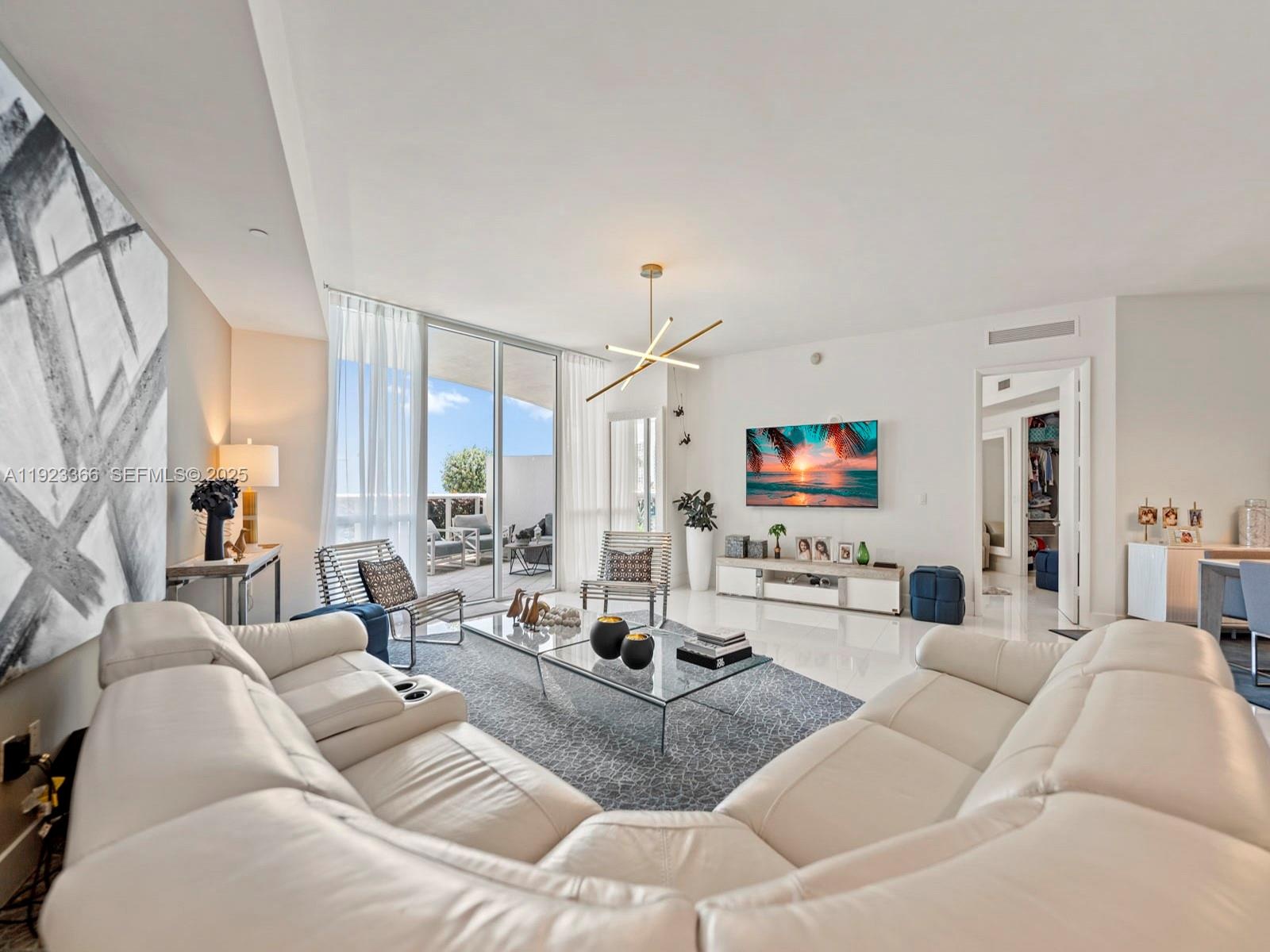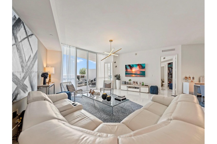 Luxury two-bedroom, two-bathroom oceanfront lanai condominium offering 1850 square feet of living space and features an oversized private terrace with direct access to the pool deck. Resembling a beach house, it boasts a generously high ceiling living room with views through 10-foot-to-ceiling windows. The spacious master bedroom with an en-suite bathroom, a modern kitchen, Exclusive beachfront amenities include private beach chairs, an oceanfront gourmet restaurant with on-demand delivery to your beach chair, an opulent clubhouse, a state-of-the-art fitness center, his and her health spas, two lap pools with attendants, valet service for two cars accessible via an on-call app, and a business center. Additionally, the property features a newly and spectacular renovated patio and pool area.