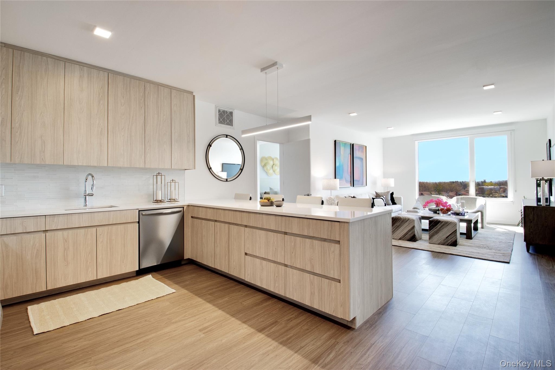 This expansive 2-bedroom, 2-bath residence offers 1,158 sq. ft. of well-designed space, featuring a dedicated home office and a layout that blends comfort, function, and privacy. The open living and dining area is filled with natural light and flows seamlessly into a modern kitchen—ideal for both everyday living and entertaining. A laundry room with in-unit washer and dryer adds convenience rarely found in apartment living. The thoughtfully designed primary suite features a spacious walk-in closet that connects directly to the en-suite bathroom, creating a private, suite-like retreat. The second bedroom is located on the opposite side of the apartment for added privacy and is adjacent to the second full bathroom and home office. Residents enjoy secure keyless entry, a stylishly furnished lobby with Amazon package room, resident lounge, fitness center, and business center—all included in the rent. Additional perks include indoor garage parking with EV charging stations, private storage options, an on-site resident super, and pet-friendly policies (see Documents for details). Ideally situated near the train, village shopping, parks, and major highways, this brand-new building offers a modern lifestyle in an unbeatable location.