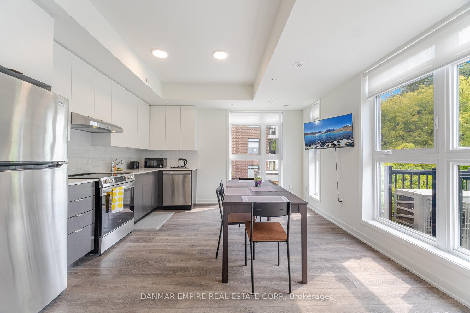 FURNISHED amp ; FLEXIBLE LEASE OPTIONS Welcome to this contemporary 2 storey townhome facing the private wooded area in one of Toronto's most connected and rapidly evolving neighbourhoods.