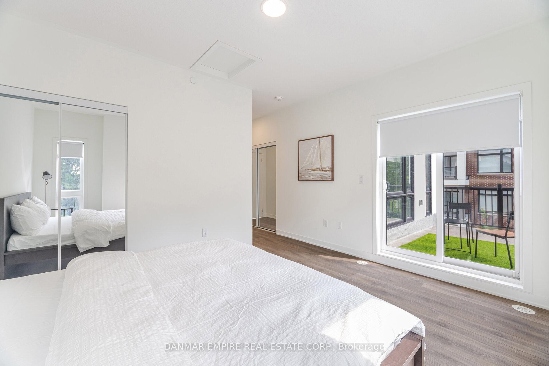 FURNISHED & FLEXIBLE LEASE OPTIONS Welcome to this contemporary 2-storey townhome facing the private wooded area in one of Toronto's most connected and rapidly evolving neighbourhoods. This bright, spacious home features three private en-suite bedrooms, each with its own separate entrance, ideal for privacy, flexibility, and shared living. Two of the bedrooms feature large private balconies, while the main floor opens up to a massive shared terrace, perfect for outdoor relaxation. The open-concept main level boasts a sun-filled living and dining area, a modern kitchen with full-sized appliances, and a versatile bedroom great for guests, extended family, or a home office setup. Upstairs, two oversized bedrooms each include private en-suites and ample closet space, offering rare comfort and convenience in a city setting. Enjoy serene views of landscaped green space and easy access to walking trails, parks, and a children's playground. Located in the Daniels Keelesdale community, you're just minutes from the new Eglinton LRT, major highways, schools, shops, and daily essentials. Utilities included. Gym and recreation centre access available. Condo and city bylaws must be followed.
