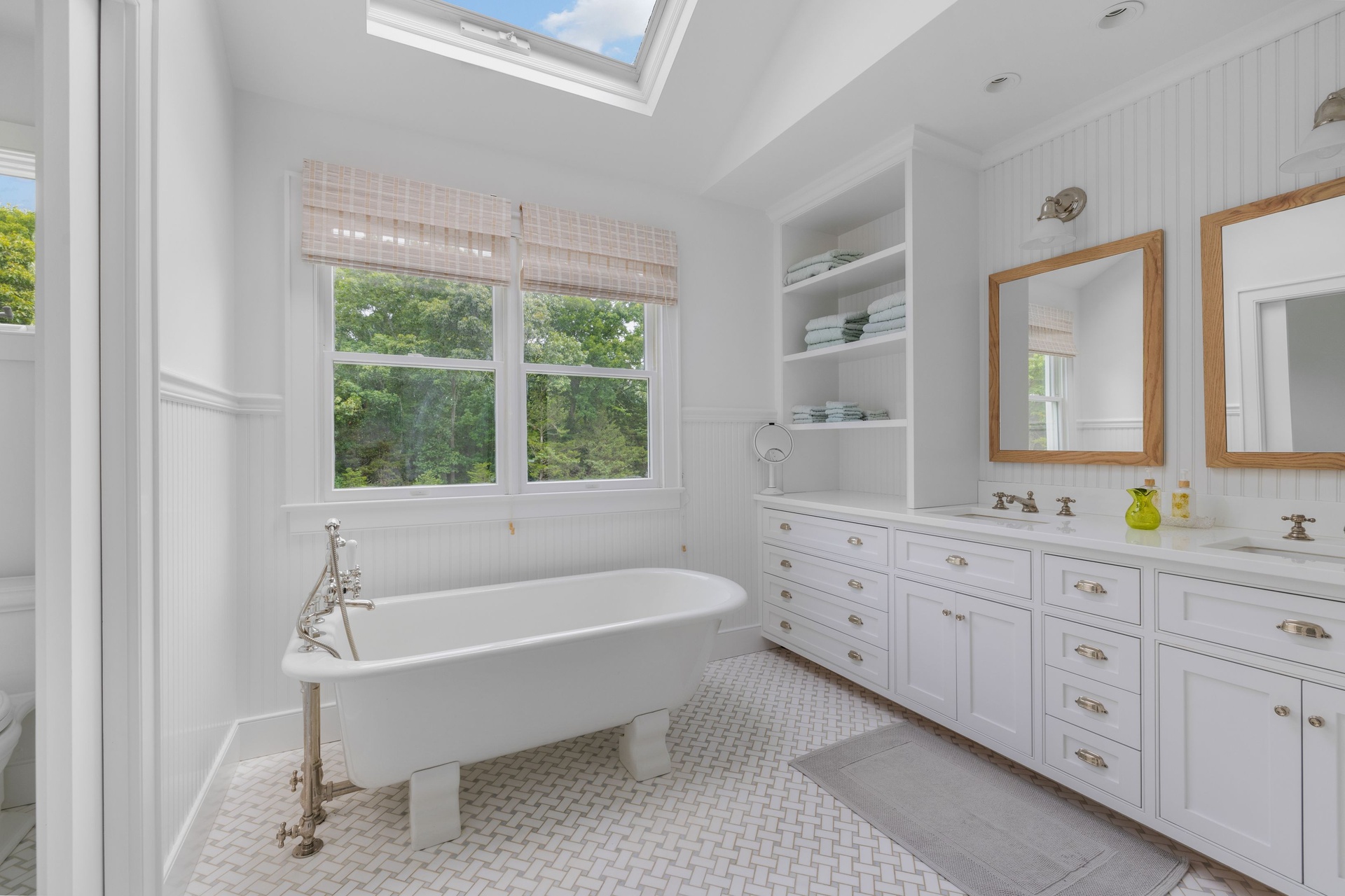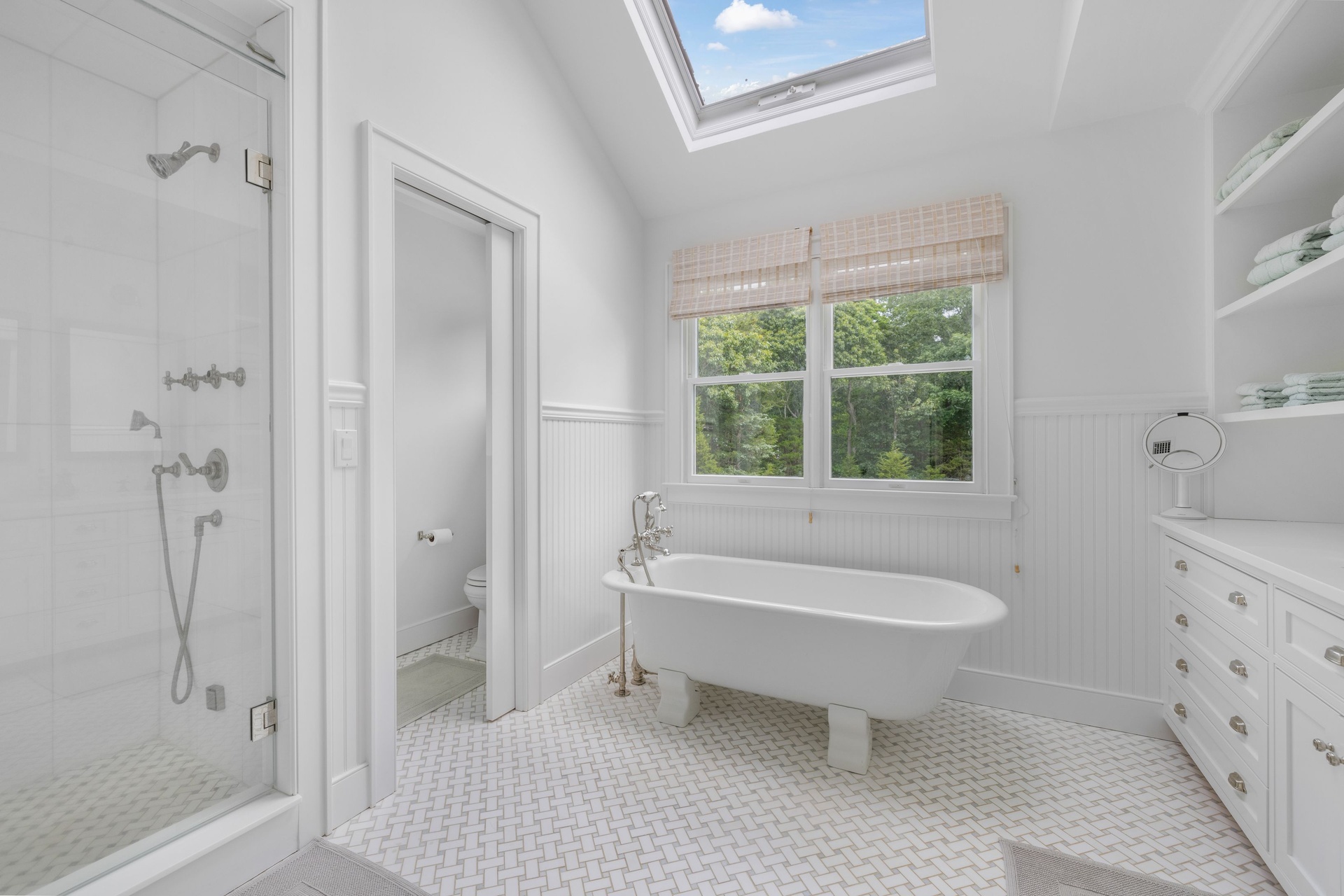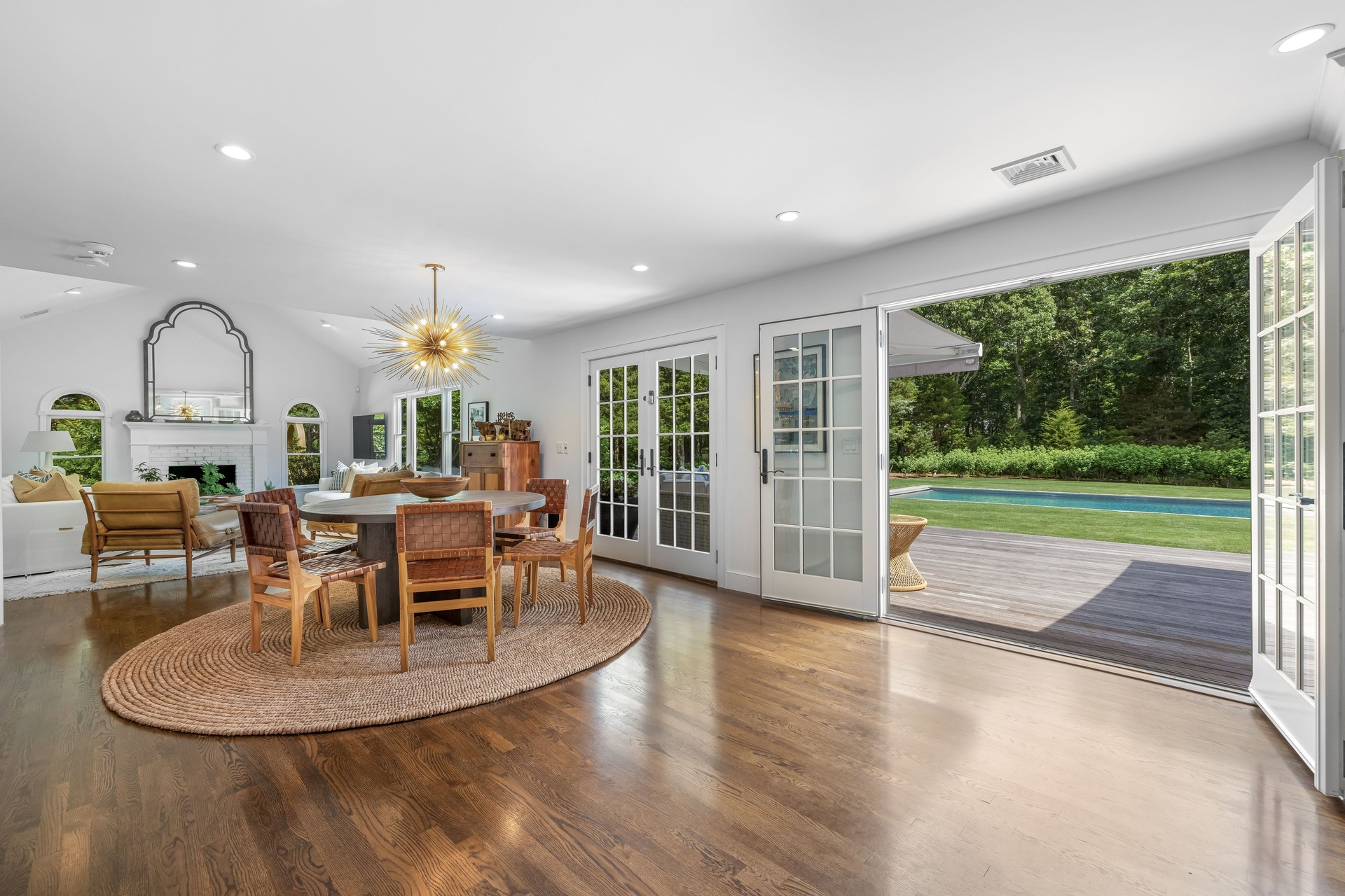 From this charming and light-filled North Haven traditional affording solitude on 1.8 acres, take in those breathtaking sunsets and stroll to Beautiful Sunset Beach. Beautifully landscaped by the home's designer owner, it was recently renovated and the great room with the dining area and living space with the fireplace is open to the gorgeous new chef's kitchen. Beautiful primary bedroom and bathroom, as well as 3 guest bedrooms, including one on the first floor, and 2 guest bathrooms. The expansive deck is complemented by a brand-new, enchanting 20x50 heated gunite pool and an 8x10 hot tub, creating wonderful party areas. elegantly decorated. Sag Harbor Village's famous restaurants, art galleries, live theaters, and freshly finished arts center and cinema are only minutes away!