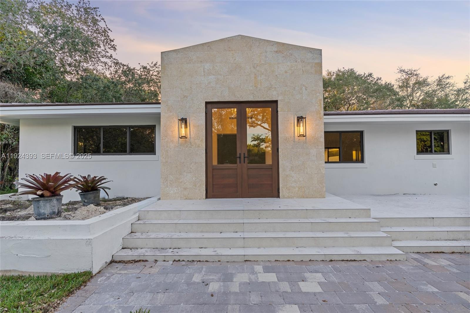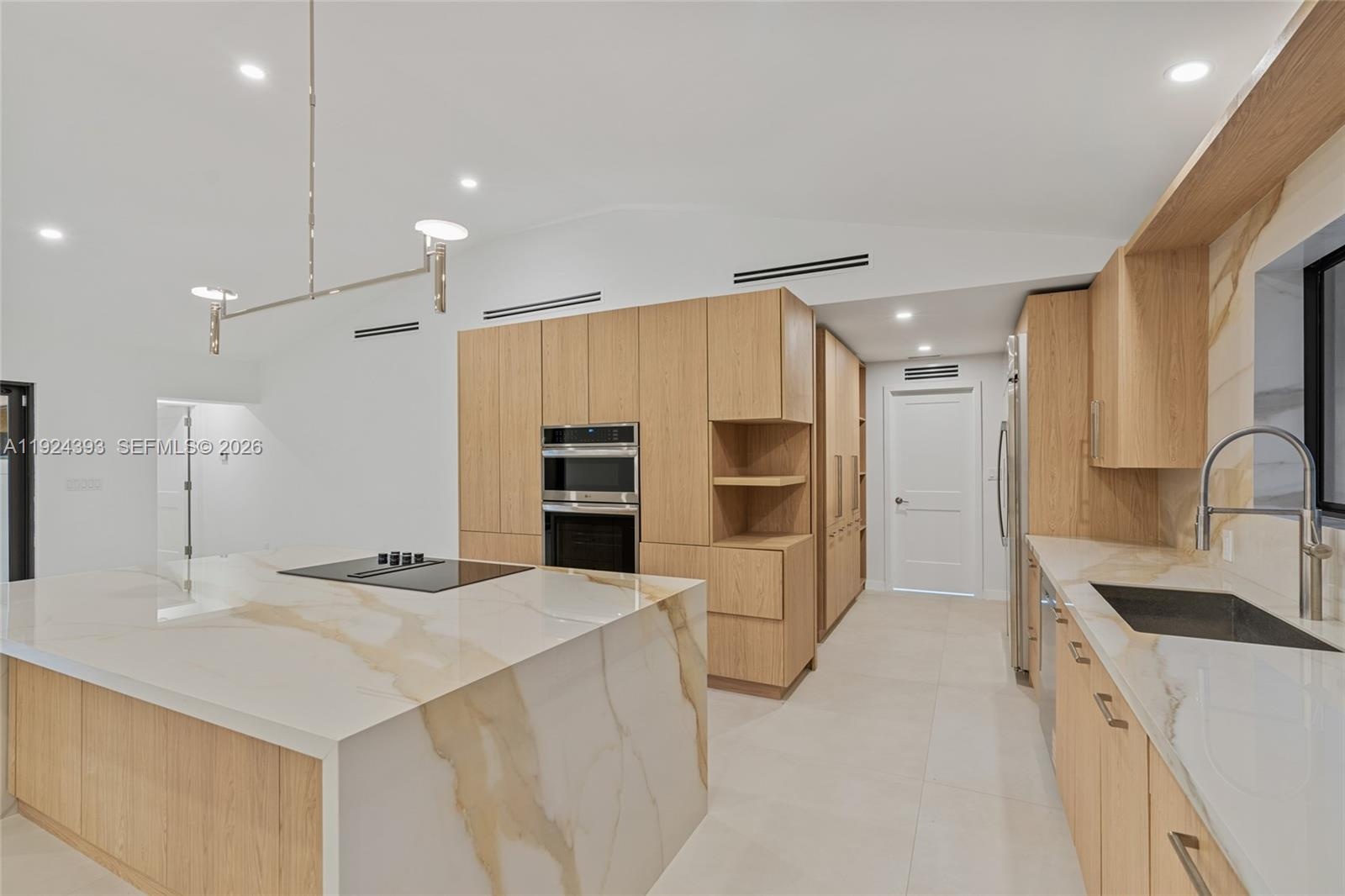 Completely renovated modern estate on an expansive corner lot in desirable Pinecrest. Stripped to the shell and rebuilt, Fully reimagined and Reconstructed from the inside out, Every detail is brand-new including electrical, plumbing, roof and impact windows and doors throughout. 3862sqft living area, as per recent appraisal. This home blends modern luxury with warm natural finishes, offering an elegant, open-concept design throughout. This stunning 5 bedrooms and 4 bath home features a spacious open floor plan with vaulted ceilings, natural finishes, and abundant light throughout. The designer kitchen offers custom wood cabinetry, premium stone counters, an oversized waterfall island, induction cooktop, double oven, and full wall of pantry storage. The open layout flows into a bright and oversized family/dining/living space, perfect for entertaining. The primary suite includes a luxurious spa-style bathroom with double vanity, freestanding tub, and large glass-enclosed shower. 48x48 porcelain flooring throughout the main living areas, and beautiful natural wood flooring in all bedrooms. Additional flexible rooms are perfect for office, gym or playroom.