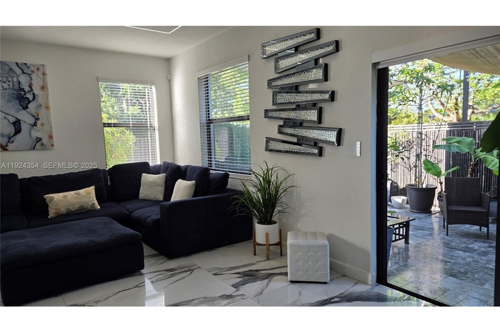 SUBMIT OFFER TODAY! WILL NOT LAST! LARGER CORNER UNIT! Beautifully designed 4bedroom, 3.5bath luxury townhouse in a highly sought-after gated community featuring 24hour security patrols. A perfect blend of elegance and functionality, this home is equipped with cutting-edge smart technology throughout, offering the ultimate modern living experience. The home boasts a spacious living room, dining room, Florida room open concept. Just minutes from Aventura Mall Sunny Isles Beach and major expressways. Key Features: • Smart Home Integration with Wi-Fi. Smart thermostat, smart lighting, smart switches, and a digital keypad door lock. Stay secure with Ring Camera Pro, Ring Alarm Pro, and a Ring Doorbell Pro. • Sustainable Design: Includes a county/HOA approved electric car charging station—. (Charger not included.) • Certified No Flood Zone. Interior Highlights: • Elegant Living Spaces: Stunning Italian tile flooring and designer recessed linear lights illuminate every room. Custom Armani Italian backsplash and a marble stone accent wall bring a touch of luxury to the kitchen and living areas. • Gourmet Kitchen: Featuring two-tone Italian Formica cabinets with soft-close drawers, Cabella Quartz countertops with three eye-catching waterfalls, and designer Italian-style glass backlit light switches throughout the home. • Master Suite. The master bedroom features a custom-built walk in closet with finely crafted cabinetry and Italian porcelain floor. • Bathrooms: upgraded