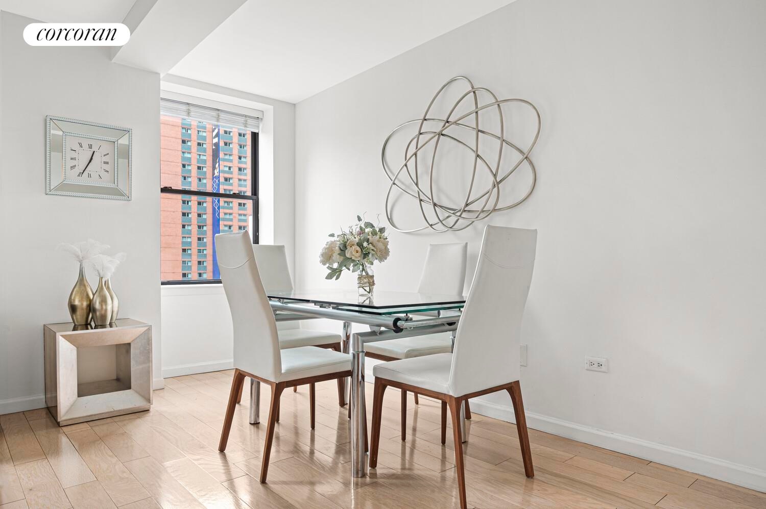 The building's flexible sublet policy, allowing short term rentals, makes it a high-demand option for investors. Prime location, in the Theater District, Fifth Avenue shopping, Central Park, and public transportation, ensures unmatched convenience.