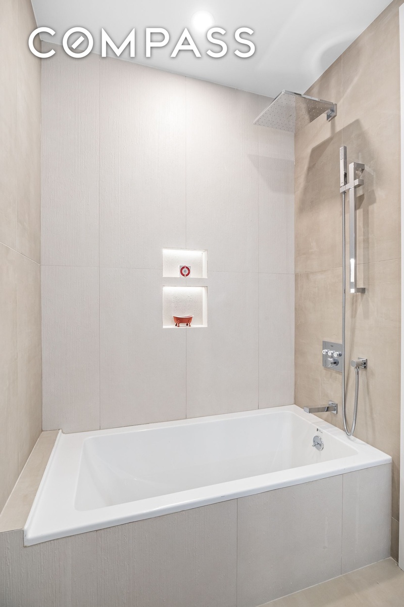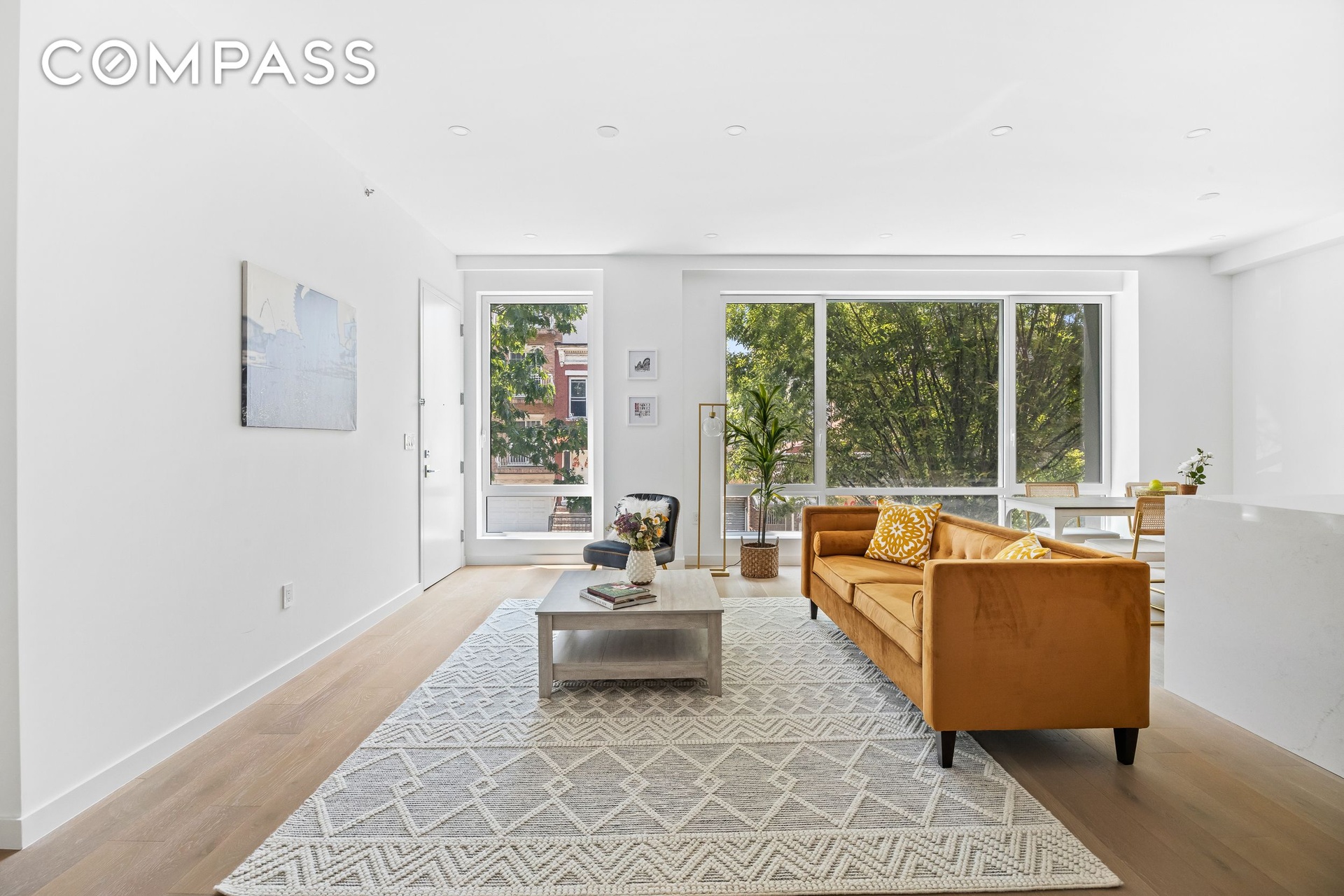 Spacious like a house, all on one level. At 1,542 square feet, this true three-bedroom, two-bath condo delivers the kind of space New Yorkers are always searching for. Every inch is thoughtfully arranged on a single floor, giving you the scale and ease of a house without a single stair to climb. The elevator opens directly into your home, and the living and dining areas unfold in one bright, seamless sweep. With nearly ten-foot ceilings and eight-foot windows, the space feels open, calm, and filled with natural light. Host a festive holiday dinner, settle in for a movie night, or read in the afternoon sun. The generous layout adapts to every mood. The dining area comfortably fits eight to ten, making it ideal for gatherings. The Italian-crafted kitchen by Studio 21 anchors the home. Quartz counters, custom cabinetry, and Bertazzoni and Miele appliances elevate both the look and the experience of cooking. Its placement within the open layout keeps the flow easy and connected.