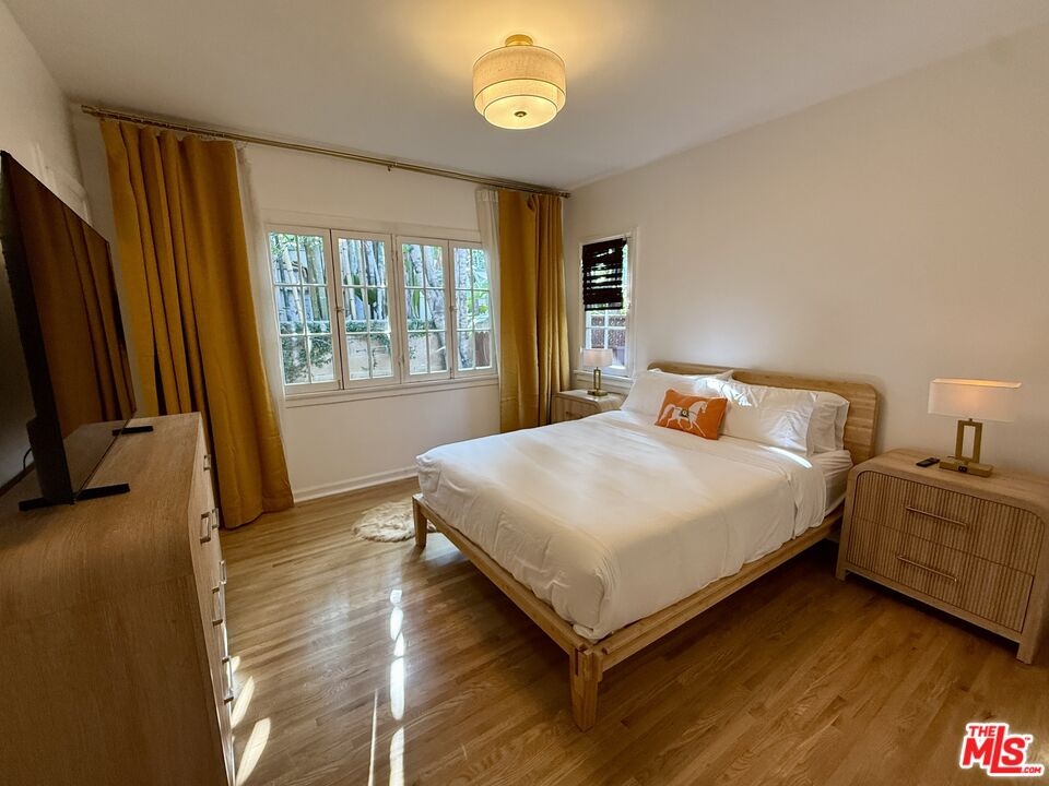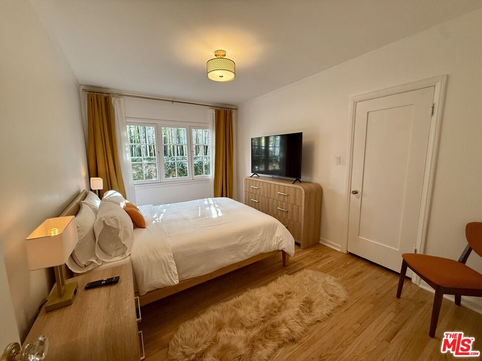 Bold, fashion-forward interiors meet classic 1920s Spanish character in this FULLY FURNISHED, truly move-in-ready 2-bedroom West Hollywood home packed with turnkey, Airbnb-style conveniences. Just bring your suitcase! Designed to feel like a boutique hotel with serious personality, the home features dramatic, curated furnishings, layered textures & beautiful window treatments, and statement lighting throughout. Enjoy a gorgeous private front yard, one garage parking space, and easy street parking for guests - additional parking permits available with lease. The stylish chef's kitchen is fully stocked and beautifully finished with custom solid-wood cabinetry, quartz countertops and backsplash, chic espresso-colored appliances, a built-in drinking water filtration system, and an under-counter microwave drawer! Plus a large stacked washer/dryer for effortless daily living. The designer bathroom showcases custom tile, a solid oak vanity with marble top, and a lighted mirrored medicine cabinet. Original hardwood floors, an authentic fireplace, antique-gold fixtures, and a lush privacy hedge surrounding the yard create a private, cottage-style escape with serious personality! Pet-friendly and just moments from Plummer & Poinsettia Parks, Trader Joe's, Smart & Final, and the best shops, cafes, and nightlife along bustling Santa Monica Boulevard and Melrose Ave -- this is West Hollywood living at peak convenience and style! Home never felt so good! ***Lease available for 13 months or greater.***