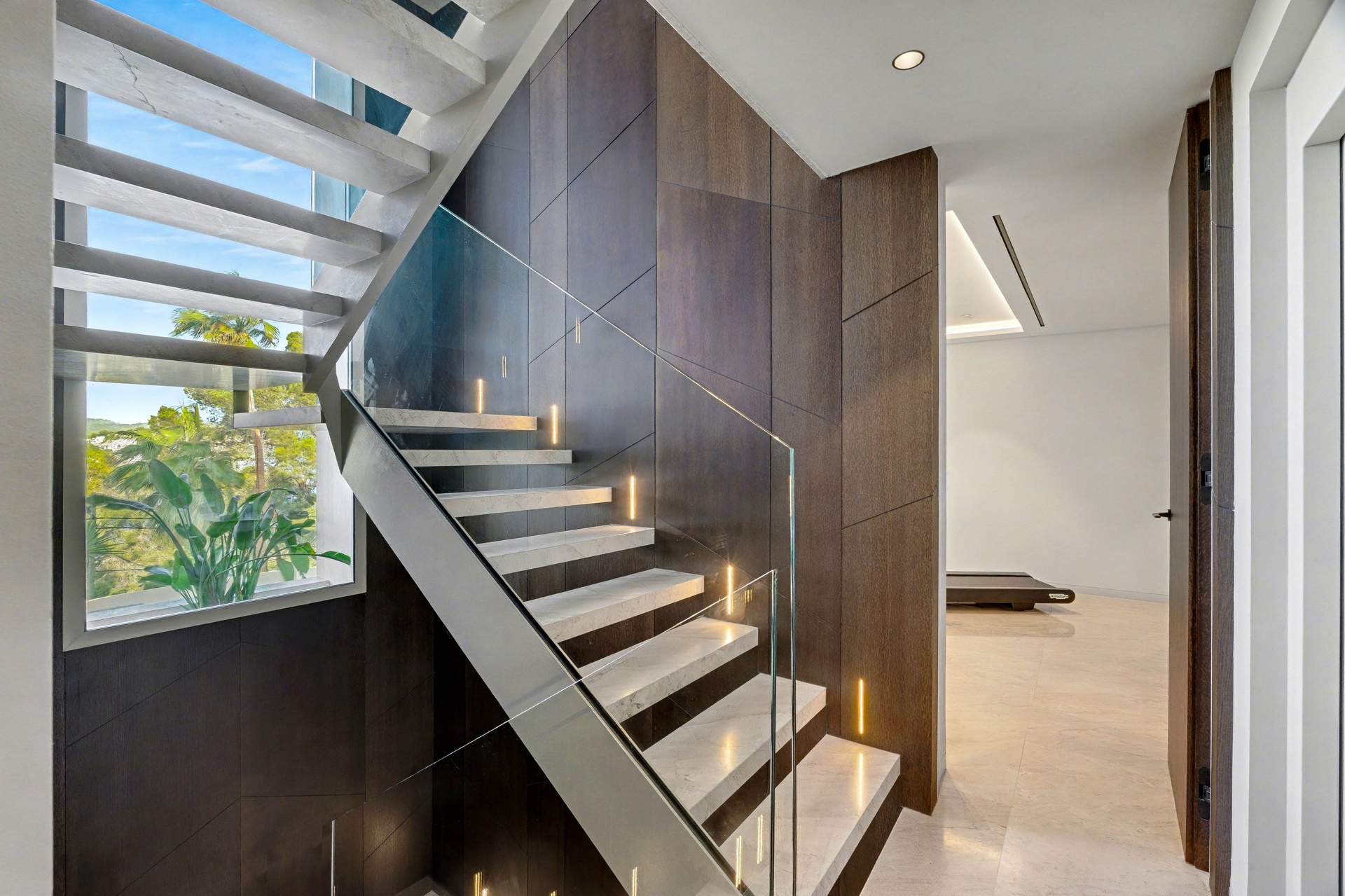 Located in a private residential enclave close to Port Adriano, the property combines elevated design, high-quality materials, and a layout tailored for modern Mediterranean living. Floor-to-ceiling glazing, multiple terraces, and an infinity pool with a built-in jacuzzi maximise light, views, and indoor–outdoor flow.