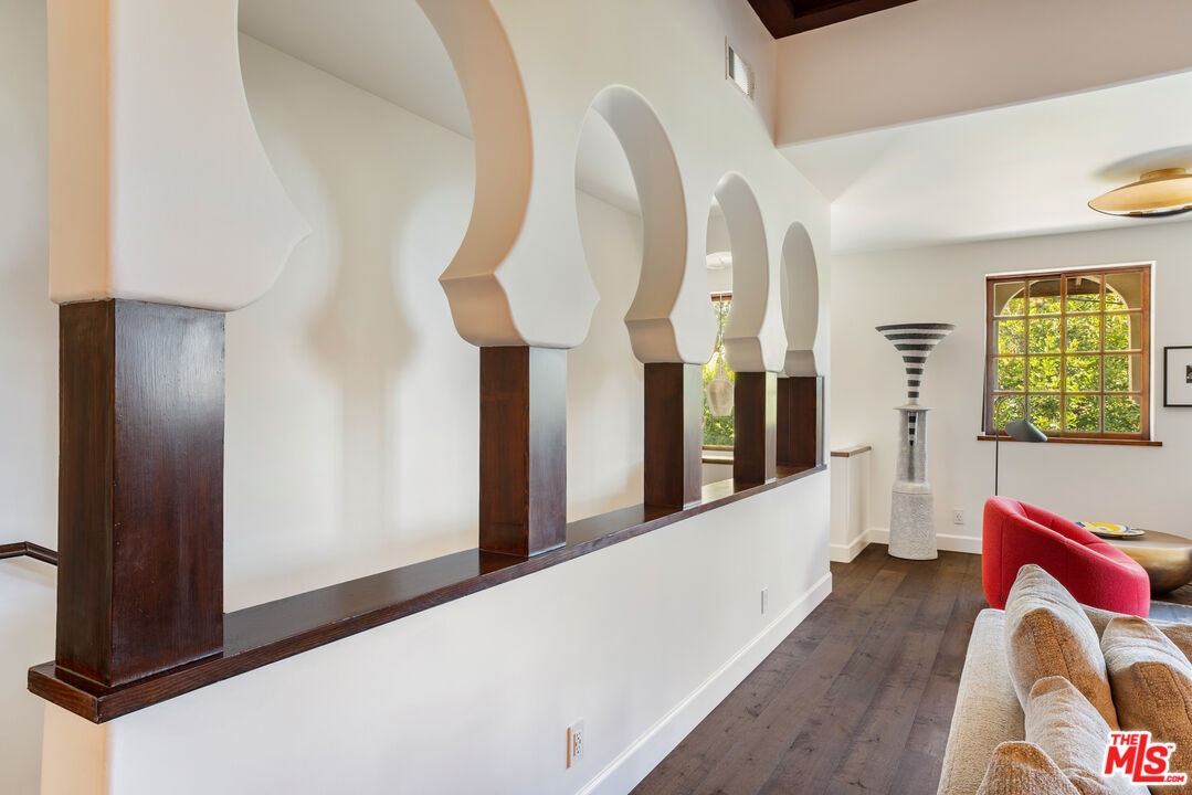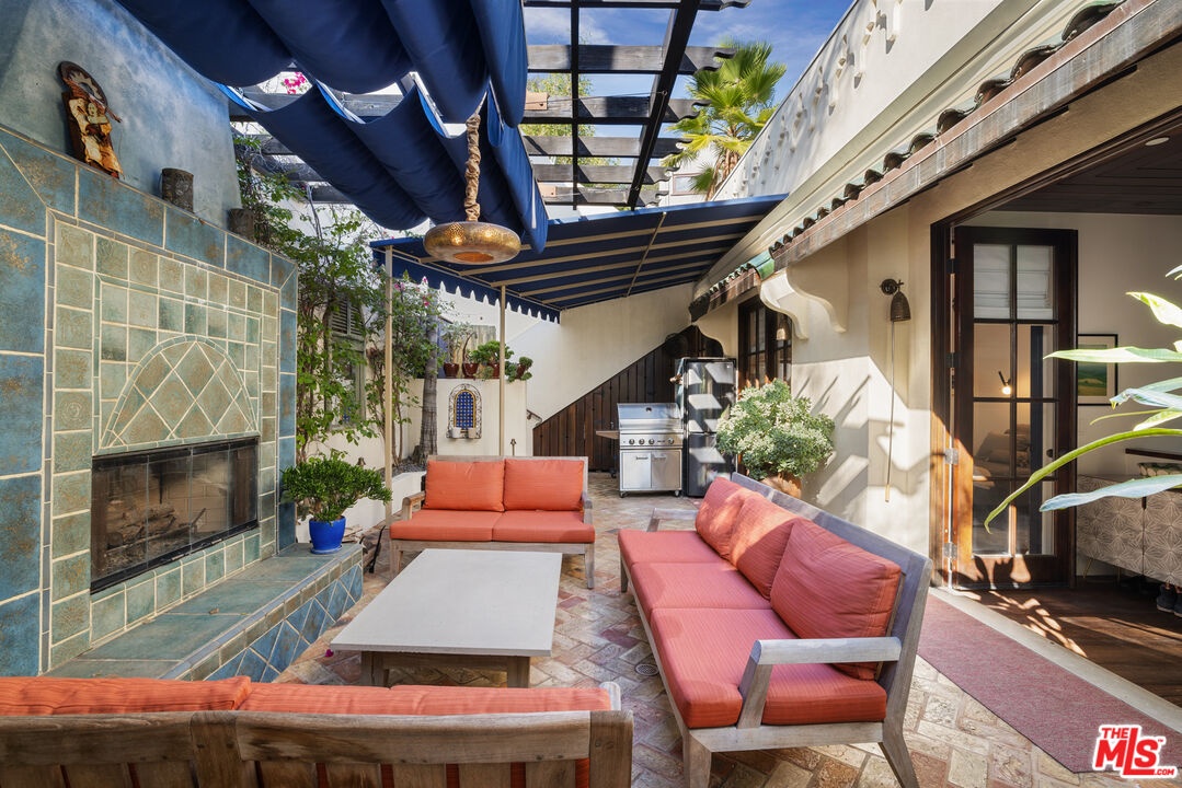 Set above the city yet moments from the trails of Runyon Canyon, this modern Moroccan masterpiece featured in The Wall Street Journal delivers a rare blend of Old World romance and modern reliability. Built in 2003, it pairs handcrafted detail with contemporary systems and an effortless indoor-outdoor flow. Arched doorways access a dramatic living room with 10-foot oak coffered ceilings, carved ironwork, and Moroccan lanterns that cast a warm dusk glow. The home spans approximately 3,177 square feet with three signature terraces, one capturing tranquil canyon views by day and glittering city lights by night. The kitchen, which opens to the dining room and the patio, boasts ample countertop space, an abundance of cabinetry and storage, a Viking range, a Sub-Zero refrigerator, and a Viking dishwasher. The fully equipped outdoor cucina perfect for quiet evenings, long conversations, and entertaining al fresco features a stainless steel grilling station, a stainless steel sink, a full-size refrigerator, a Bosch dishwasher, and generous prep space. Moroccan archways, Zellige tile, engineered European oak floors, custom ironwork, and three fireplaces create warmth and character throughout. A private guest space with its own entrance, kitchenette, bathroom, and parking adds impressive flexibility for guests or extended stays. Located near Runyon Canyon, the Wattles Mansion, the Hollywood Bowl, the Sunset Strip, The Grove, and Melrose Avenue, the residence sits at the intersection of nature, community, and Hollywood glamour. 1925 Curson Place is more than a home. It is a sanctuary, a retreat, and a rare fusion of timeless style and modern comfort.