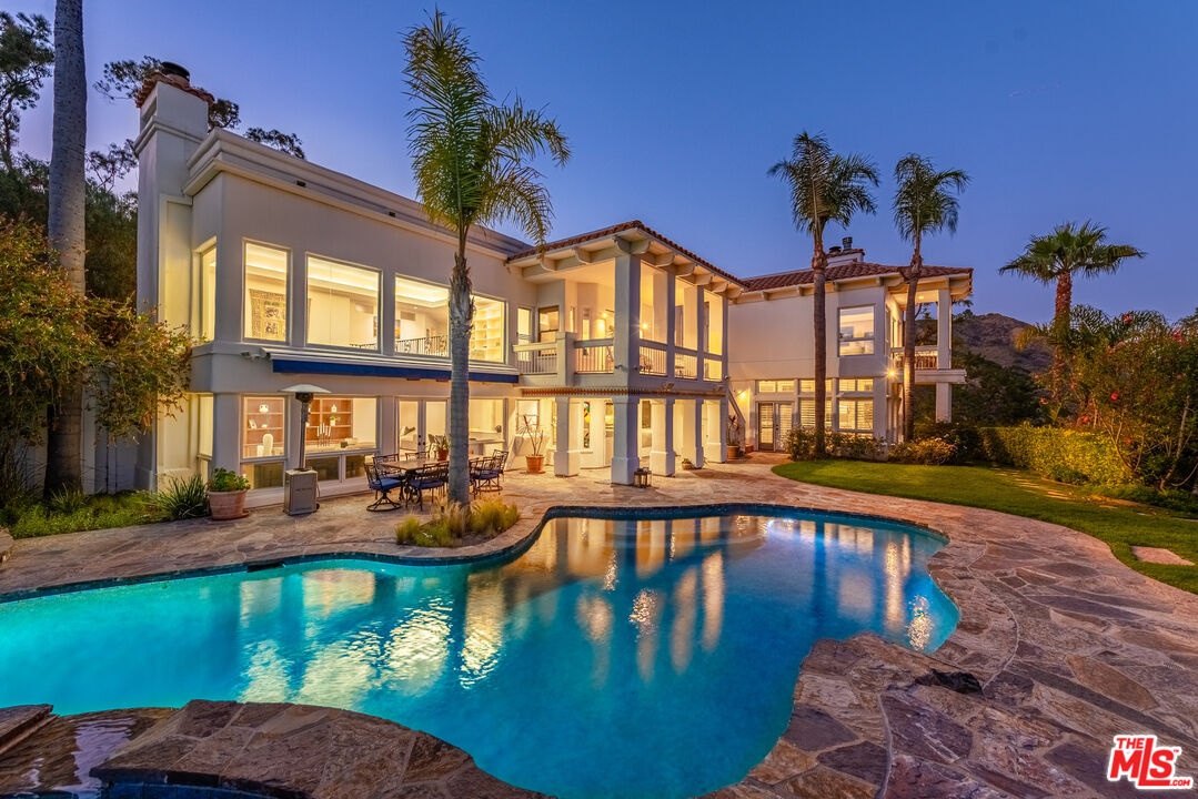 This 6 bedroom pool home with expansive ocean views and within a short distance to the beach, offers Malibu living at its finest. Step into your contemporary Spanish Malibu oasis through a striking, high-ceiling foyer. From here, pass the stylish study area with direct patio access to the cozy main living area with a fireplace and easy access to both a private patio and the pool area. The kitchen is a chef's dream, complete with a central island, a spacious walk-in pantry, and a sunlit breakfast nook that opens directly to the pool area. An adjacent bar connects to the elegant dining room, with double-height ceilings and seamless flow to the pool and BBQ area perfect for both casual gatherings and formal occasions. The main level also hosts a media room that offers a dedicated space for entertainment, a powder room, a fully equipped laundry room, and a guest bedroom with an en-suite bathroom (currently set up as a gym). The upper level is a private retreat featuring a luxurious primary suite with expansive ocean views, a walk-in closet, and a spa-like bathroom with dual enclosed water closets, an oversized shower, a soaking tub, and an electric sauna. A private staircase leads from the primary suite directly to the pool area. The second bedroom boasts a full en-suite bathroom, a private balcony with ocean and pool views, and a walk-in closet. Two additional bedrooms share a central bathroom and a balcony with ocean views. A versatile loft-style bonus room overlooking the dining room can be set up as a library, a game room, a study, an atelier or whatever you imagine of this space. Outside, immerse yourself in Malibu's natural beauty with a solar-heated pool, hot tub, an oversized deck, BBQ area, and ample space for outdoor dining and lounging. This home has everything you need to fully enjoy the Malibu lifestyle, blending spacious elegance with a layout designed for relaxation and entertaining. Conveniently located in Central Malibu, minutes away from Latigo Beach one of the best surfing spots in Malibu, Escondido Falls, Paradise Cove, Point Dume, and many other well-known Malibu nature spots. A short drive to both Malibu and Trancas Country Mart for shopping, groceries, and activities. Available for Sale
