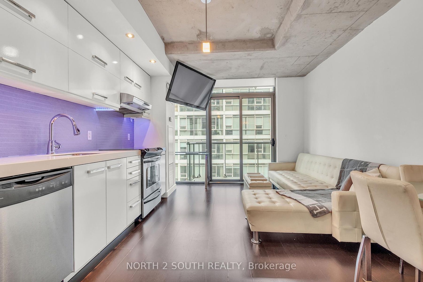 Fully furnished soft loft in the heart of King West featuring an open concept layout, modern furnishings, full size appliances, queen size bed, and generous storage.