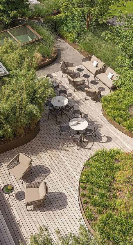 The building’s striking façade is defined by fluid architectural lines, expansive glass surfaces, and natural textures that evoke both strength and serenity. Each level is framed by generous terraces adorned with lush greenery, blurring the boundary between indoor comfort and outdoor tranquility.