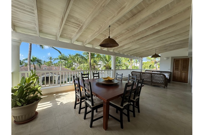 One of the defining elements of this home is its remarkable outdoor living experience. The penthouse offers three expansive Caribbean-facing terraces: two open terraces positioned on opposite sides of the residence, and a third, fully covered terrace with a portico, perfect for shaded dining and relaxation. Each terrace enjoys uninterrupted sea views, creating an atmosphere of calm, privilege, and gentle Caribbean breeze. The layout also includes a dedicated laundry room, thoughtfully positioned to ensure convenience while remaining discreetly integrated into the home.