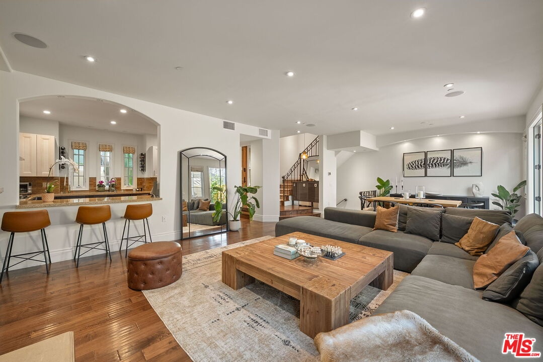 Welcome to 941 11th Street an upscale townhome located moments from the best of coastal living in one of Santa Monica's most desirable residential pockets. Just a block away from shopping and restaurants on Montana, this 3-bedroom, 2.5-bath residence showcases refined finishes and exceptional care, offering a like-new feel throughout. A standout attribute of this home is the uncommon 3-car private garage, providing direct interior access and rare added convenience for the area. Inside, warm hardwood flooring extends through all levels, creating a cohesive and inviting atmosphere. The main floor is highlighted by a spacious chef-inspired kitchen, a bright and airy living room, and a dining space that opens onto an oversized private patio stretching the full width of the property. Designed for both style and functionality, the kitchen features premium engineered stone countertops, a sleek designer tile backsplash, and high-performing stainless-steel appliances. Custom cabinetry with Italian craftsmanship offers generous storage, complemented by an integrated refrigerator that blends effortlessly into the overall design.All bedrooms are thoughtfully positioned on the second floor for privacy and comfort. The primary suite delivers a true retreat experience, complete with a walk-in closet, an additional organized storage closet, a cozy fireplace, and a spa-influenced en-suite bath. The bathroom is tailored with dual vanities, luxurious countertops, spa tub, and a glass-enclosed shower for an elevated daily escape. The top level presents a versatile loft, ideal as a home workspace, creative studio, or lounge area, and opens to two separate secluded rooftop decks with neighborhood and sky-line views. Additional features include high-speed structured wiring, built-in surround audio, multi-zone climate control, an in-home laundry setup, and a comprehensive security system. A rare combination of contemporary design, practical luxury, and outdoor space, this townhome brings effortless living to everyday Westside life.