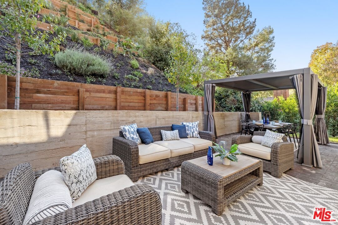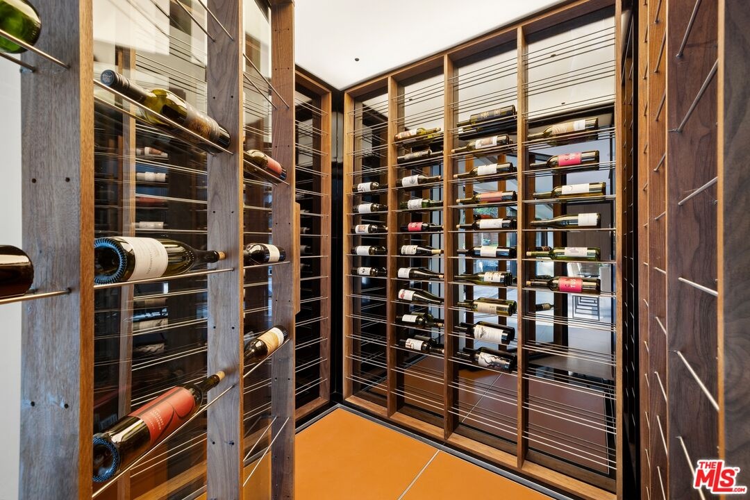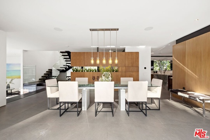 Set on a 16,270 sq ft upslope lot, this renovated two-story, four-bedroom home sits about a mile from Sunset Boulevard on a quiet Bel Air cul-de-sac. More than 190 feet of street frontage, two driveways, a 2-car garage, and plenty of off-street parking as well. The existing home is approximately 3,550 sq ft, with the potential to expand to around 5,500 sq ft or more depending on configuration.Inside, the home was recently renovated in a warm, modern style with new aluminum windows and doors, bringing in natural light and hillside views from nearly every room. Perimeter hedging provides privacy throughout. The living room has floor-to-ceiling glass, 10+ foot ceilings, and a limestone floor and an Italian marble fireplace.The first floor features an entertainer's kitchen with walnut cabinetry, Brazilian quartzite counters, a 12-foot island, and appliances from Thermador, Miele, and Gaggenau, including gas, electric, and teppanyaki cooking modules. A family room with built-in audio, a 5-foot gas fireplace, and a 16-foot pocketing glass door opens to the backyard. The dining room seats 12 comfortably and includes walnut wall panels, a 155-bottle wine display, and another full-length pocket door to the outside.Upstairs, all bedrooms have hardwood floors and modern walnut doors. The main suite includes two walk-in closets, a built-in Bose system, and a large bath with a soaking tub, dual showers, and mountain views. Three additional bedrooms are spacious and bright; one is en-suite. A fourth bedroom with wood-clad walls also works well as an office or gym.The backyard offers over 2,000 sq ft of flat space with room for an infinity pool, plus more than 3,000 sq ft of additional flat side and front yard. Plans for expansion are available. The home also includes upgraded plumbing, electrical, heated floors, and full app-controlled systems throughout.