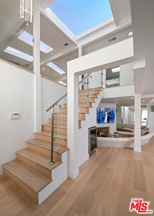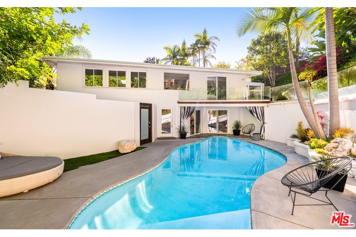 Fantastic Contemporary Oasis and former of several A-List celebrities. Nestled in a small cul de sac just 2.5 minutes behind The Beverly Hills Hotel, close to Sunset Blvd. This home has an wonderful "vibe", featuring an open floor-plan with excellent indoor/ outdoor flow. An abundance of natural light fills the home, including 9 sky-lights, and 3 oversized fireplaces. Large sumptuous Primary Suite w/ spa like bathroom, and 2nd bedroom both feature walls of glass which open out to a dramatic 50 ft. Waterfall, pond, lush yard & Fire Pit with hilltop yoga area and hammock. Updated newer Kitchen w/ porcelain counters, custom cabinetry, & top of the line MIELE appliances. Spacious, light-filled living & dining area set atop the trees. Downstairs features a private 3rd bedroom w/ separate gated entrance and garden, perfect for guests, teenager, office or live-in. Media Den with bar and fabulous sunken "conversation pit" around a fireplace, perfect for movie nights or gatherings. Heated pool with new equipment glows from every room at night. Private and Tranquil with only 2 homes on street and ample parking rarely found in the hills. Private, walled and gated entry, ready to move in! Recent 5 year rental average has been $20,150, so a great deal now. This contemporary gem is an incomparable property and rare offering. Open to 1 year, 6 months or negotiable. Can be furnished or non. Most furnishings are brand new and of great quality and style rarely found in a lease. Available immediately and ready to move in.