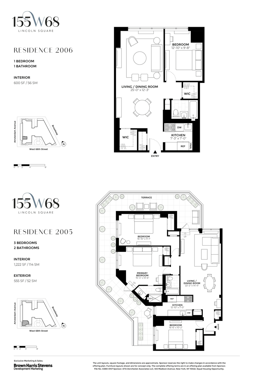 Exclusive Sales and Marketing Agent: Brown Harris Stevens Development Marketing. The complete offering terms are available in an offering plan from Sponsor. File CD83-0147 Sponsor: DTA Dorchester Associates LLC, 545 Madison Avenue, New York, NY 10022. Property Address: 155 West 68th Street, New York, New York 10023. Equal Housing Opportunity.