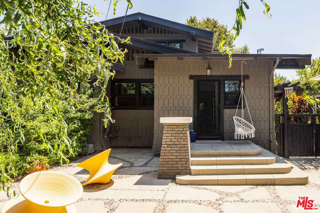 Gorgeous Craftsman rich with character and renovated to perfection on the Eastern edge of Larchmont village. The first restoration of this historic property came in 2019 when HGTV's Tarek & Heather El Moussa purchased the home and spent months reimagining the design, while leaving cherished details in tact. A welcoming front porch wraps around the entire front of the house as the extra-wide wooden door with glass emblem detail leads you into the beautiful spaces. New hardwood flooring, dual-paned windows and designer touches can be found throughout. Original plaster walls, built ins and a newly-tiled fireplace create a warm ambience. Sunshine filters through as you make your way through the dining room, bonus sun porch and adorable eat-in breakfast area. The chef's kitchen was completely redone with new cabinetry, quartz counters, high-end stainless appliances and a large center island with stools which has become the central gathering spot in the kitchen. Primary suite on the 2nd floor enjoys its own level and is surrounded by windows and views of the architectural roof lines. Ensuite primary bath with dual vanity, nickel fixtures and a custom-tiled shower with bench. On the first level are 2 spacious bedrooms that share a renovated hallway bath and a 4th bedroom (or office) nicely located in the front of the house. In 2024 the new caretaker of this lovely home picked up where the El Moussa's left off. Creating gardens in the front and back - intentionally designed with beauty and longevity in mind. Meandering paths, a working pond and outdoor lighting create a tranquil atmosphere for day or night. The front enjoys a newly constructed privacy fence, designed to look like its been there for ages and a well-established jacaranda tree offers a canopy of privacy. Upgrades include foundation bolting, roof repair, electrical & plumbing upgrades and a new irrigation system. Decorator touches throughout include new hardware, window treatments and light fixtures. A new fence at the back of the property and a detached 2-car garage finished off for multiples uses. Take a short stroll to the Larchmont farmers market on Sundays and enjoy the strong sense of community in this beloved neighborhood.