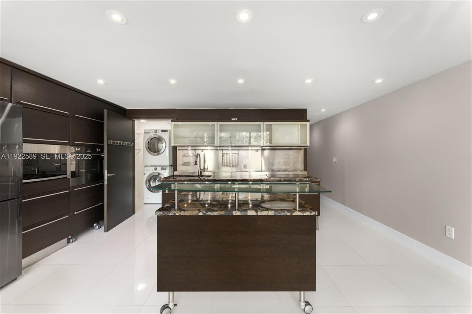 Discover a rare loft-style residence at Terra Beachside, where dramatic volume and curated design come together effortlessly. This two-story home features soaring 18-foot ceilings, expansive glass walls, and an open layout enhanced by Farrow & Ball paints and wallpaper for a refined, timeless aesthetic. The kitchen is anchored by Black Pebble Leoptra Granite countertops, sleek European cabinetry, and premium appliances. A Moooi Random Light Pendant from Design Within Reach adds architectural flair, while custom living-room soffits and all-new lighting elevate the entire space. A new HVAC ensures year-round comfort. Upstairs, the oversized primary suite offers a walk-in closet and a spa-inspired bathroom with double vanities, soaking tub, and glass-enclosed shower. The private terrace overlooks the lush central atrium—your own quiet retreat after a day at the beach. Just one block from the ocean, the residence offers direct beach access only steps away, making it effortless to enjoy sunrise walks or weekend lounging. Terra Beachside is centrally located to the best of Miami Beach, with quick access to Bal Harbour, SoHo House, restaurants, parks, and all North Beach conveniences—a loft with style, substance, and a location that truly hits the mark.