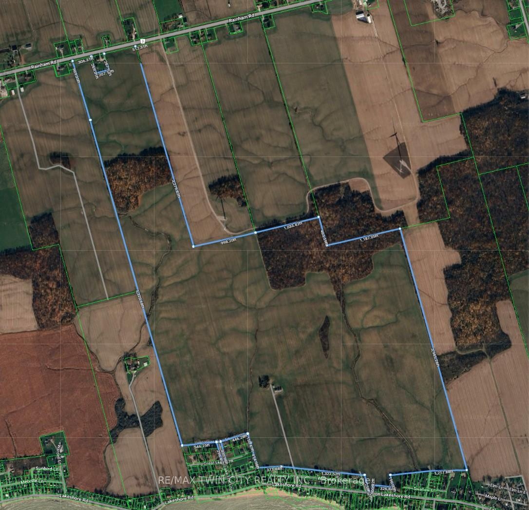Super Rare Opportunity! Stunning 435.28-acre farm property, overlooking Lake Erie in Haldimand County. One single block from Lakeshore Road up to Rainham Road, consisting of approximately 369 workable, clay-loam acres, currently in a cash crop rotation by a tenant farmer; the remainder of the land in bush and yard space. Currently an older derelict (vacant) home on site along with two storage barns and two grain bins. No wind turbines or tiling on this property. *Please note that there is a Tenant farmer Lease Agreement in effect for all the workable ground, ending December 30th, 2028, at $42,350 annual rental income. Full appraisal report available, dated March 2025. Imagine the future possibilities this wonderful property presents. Do not delay, book your private viewing today before this once-in-a-lifetime opportunity passes