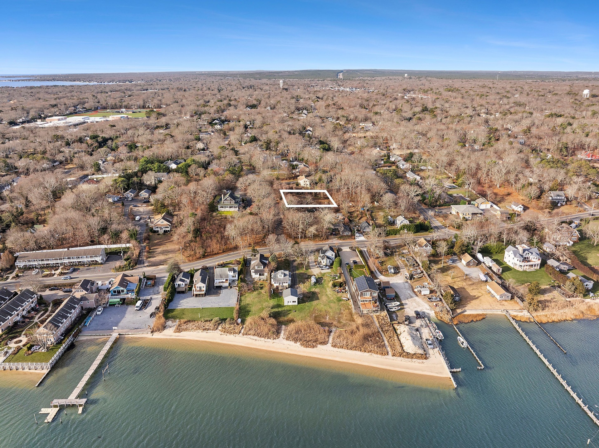 Welcome to 6 Carter Road - where an exceptional new construction home with water views of Shinnecock Bay awaits. This to be built home will boast 4 ensuite bedrooms, 4.5 baths with +\-2,300 square feet of living space on two levels with the ability to add additional living space and guest bedrooms in the lower level - board of health approval for 6 bedrooms is in place. The first level features an open-concept living room encased in windows looking out over the bay, a fireplace, a chef's kitchen, dining area, first floor junior primary suite, powder room, and a seamless flow to the covered deck and backyard as well as access to the attached garage. Upstairs, the spacious primary suite boasts features such as access to a balcony with serene views over the pool and beyond to the bay. The upstairs guest en-suite also boasts views and access to the balcony. The fourth ensuite bedroom and laundry room round out the second floor. A heated gunite pool with ample decking set against the backdrop of Shinnecock Bay offers a unique feature that is hard to come by in this price point. Located just steps to popular East End restaurants, Rumba and Cowfish as well as public bay access. With room to add a pool house and additional amenities, now is the ideal time to act while the property is still in the preconstruction phase, giving you the opportunity to customize your dream home.