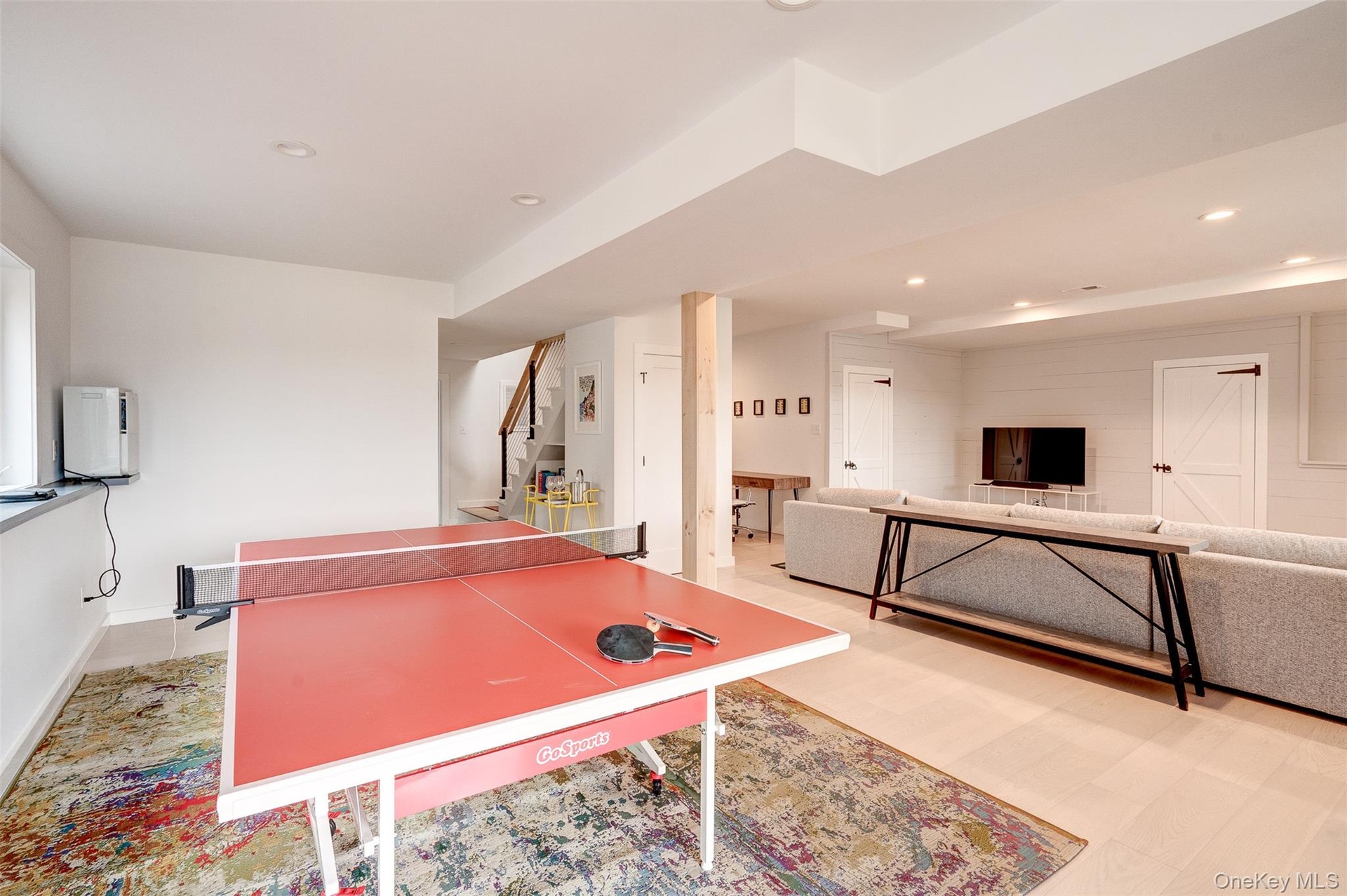 The lake itself is a highlight. Locals know it for its healthy fish population and calm waters—ideal for swimming, paddling, or a quiet morning with a line in the water. A canoe is at one’s disposal, and a raised deck is a great place to hang out. Back at the house, you’ll find a ping-pong table, a Pac-Man machine, a large screen TV, and strong internet for downtime or rainy days.